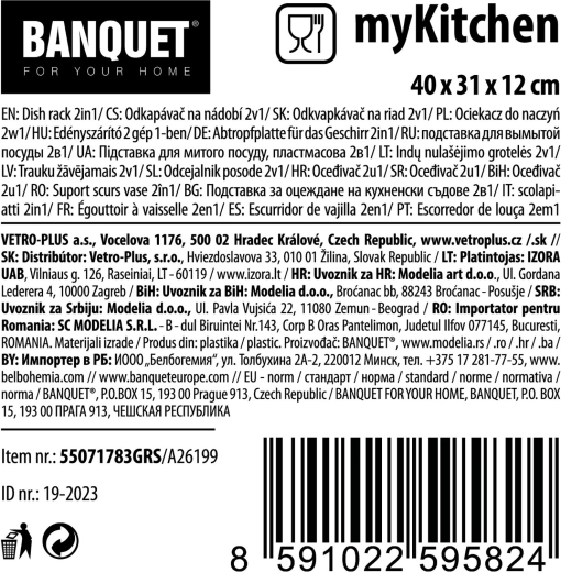 Masszív műanyag kivitelének köszönhetően az edényszárító könnyen karbantartható, könnyű és strapabíró a mindennapi használathoz. A modern szürke szín a legtöbb konyhába illik, és letisztult, rendezett megjelenést biztosít.