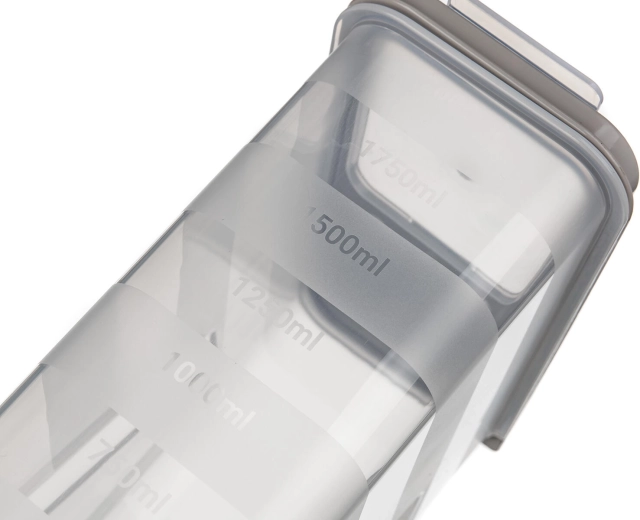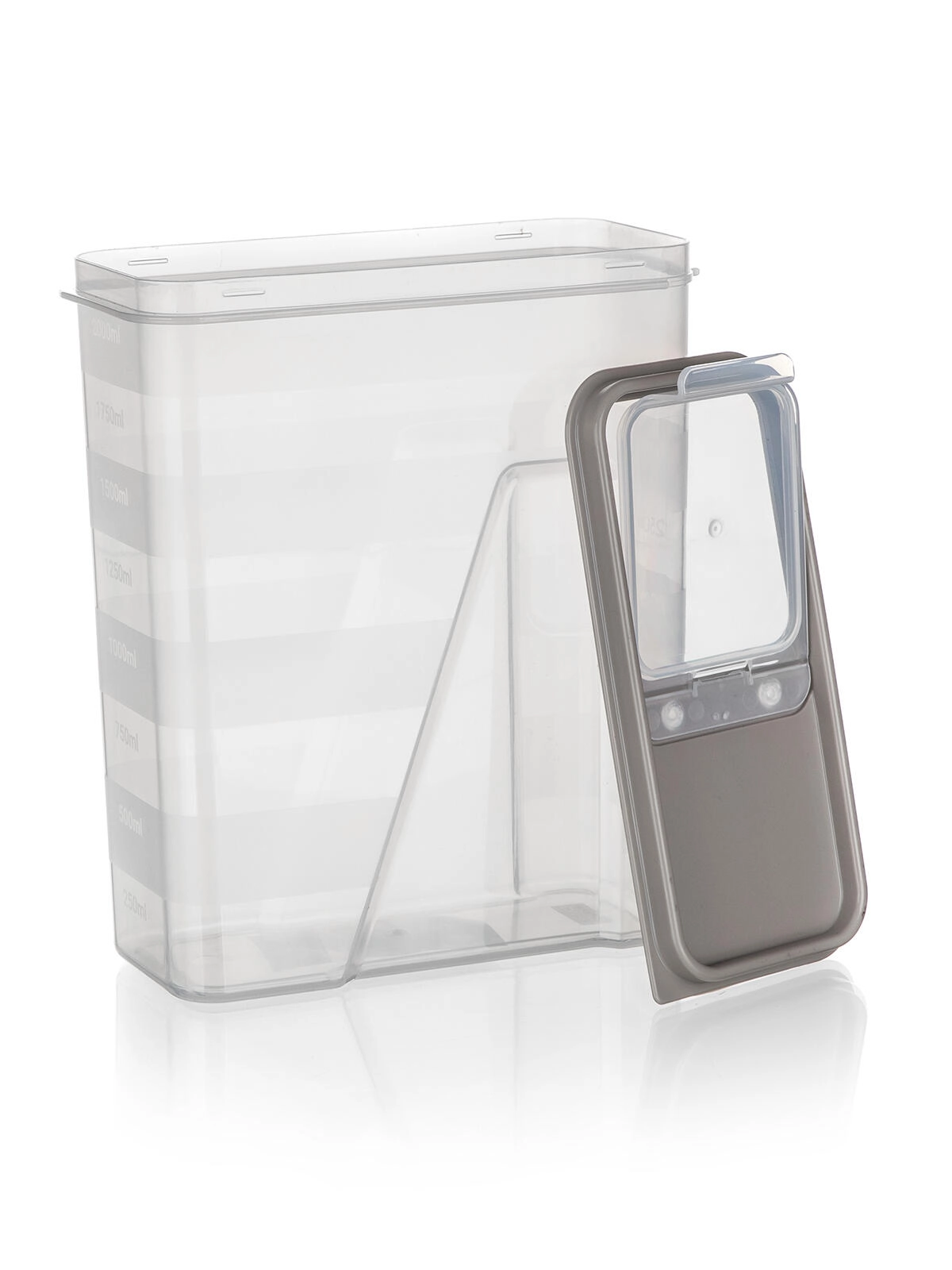 Ez a 2 literes, átlátszó műanyag doboz ideális tészta, hüvelyesek, rizs, liszt és gabonafélék tárolására. Az átlátszó testnek köszönhetően mindig szem előtt van a tartalom, a 250 ml-enkénti mérőskála pedig segít a mennyiség pontos kimérésében.