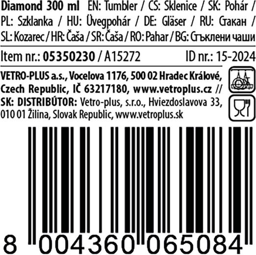 Elegáns DIAMOND pohár 300 ml űrtartalommal, modern lila színben, ideális hideg italok tálalásához. Minőségi üvegből készült, és mosogatógépben mosható.
