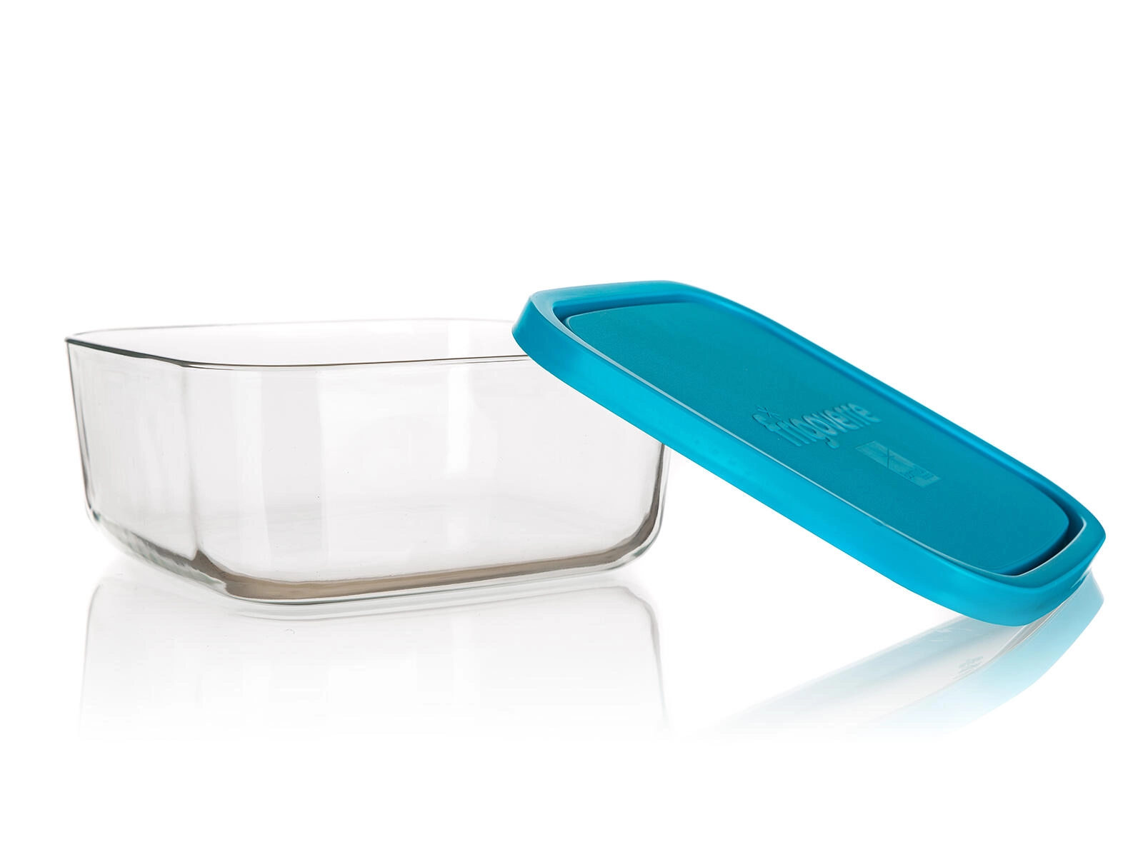 Az üvegtartály mosogatógépben mosható, és fedő nélkül mikrohullámú sütőben is használható. Az ajánlott hőmérséklettartomány -20 °C-tól +70 °C-ig terjed, így biztonságosan használható hűtőben és melegítéskor is. A minimalista dizájn kék fedővel bármely konyhába illik, és könnyen egymásra rakható.