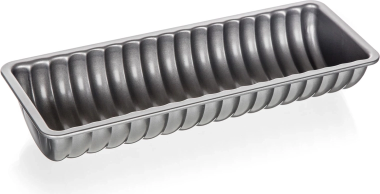 Praktikus 31,5 cm hosszú őzgerinc sütőforma tartós szénacélból, minőségi XYNFLON tapadásmentes felülettel. A tapadásgátló rétegnek köszönhetően a tészta nem ragad le, a sütés egyenletes, a kész sütemény könnyen kifordítható. Elegáns szürkés-ezüst kivitel, amely illik minden konyhába.