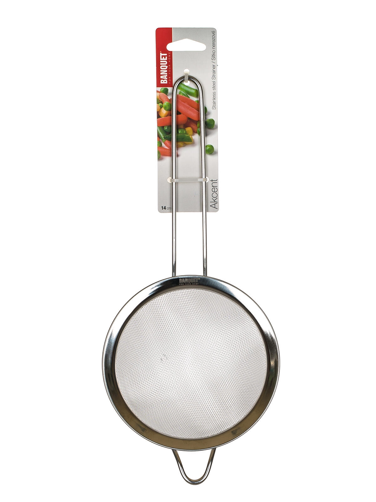 A megbízható, rozsdamentes AKCENT szűrő 14 cm átmérővel nélkülözhetetlen segítőtárs minden konyhában. A finom (0,28 mm) háló 20 szem/cm² sűrűséggel hatékonyan felfogja a nem kívánt részecskéket, akár alaplevet, mártásokat, teákat vagy gyümölcsleveket szűrsz. A tartós anyag és a masszív kialakítás hosszú élettartamot biztosít gyakori használat mellett is.