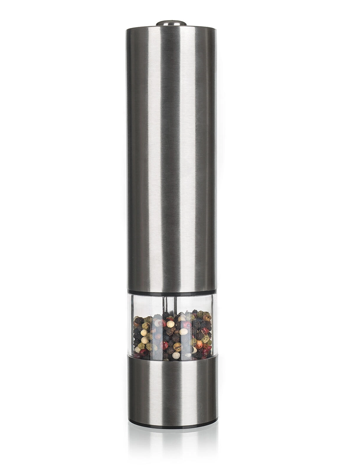 A CULINARIA Tube elegáns elektromos fűszerdarálója ötvözi a rozsdamentes acél házat, az akril tartályt, amely jól láthatóvá teszi a töltöttséget, és a kerámia őrlőszerkezetet a precíz őrlésért. Az egygombos, egyszerű vezérlés és az állítható őrlési finomság ideálissá teszi mindennapi főzéshez és asztali tálaláshoz is.