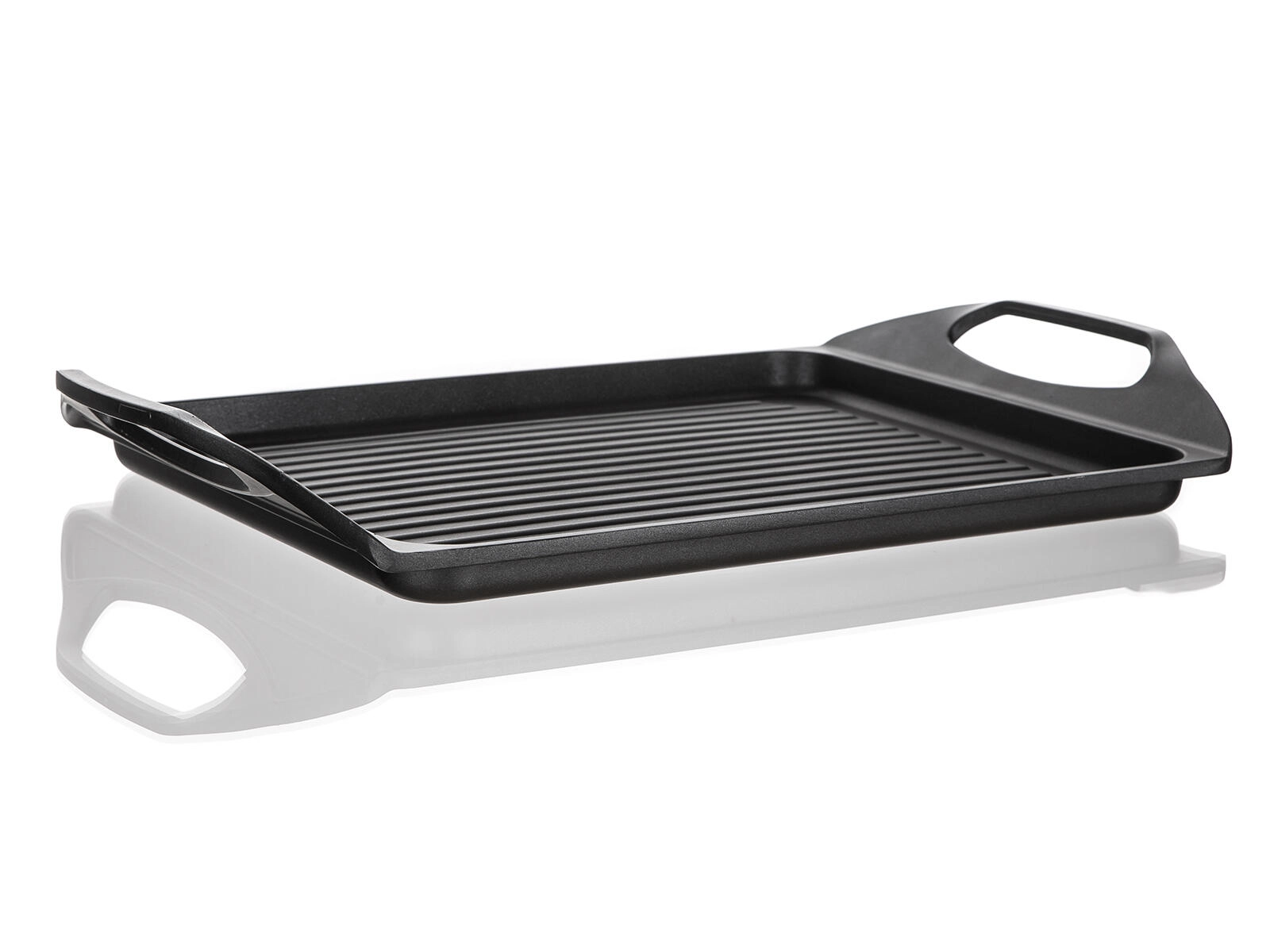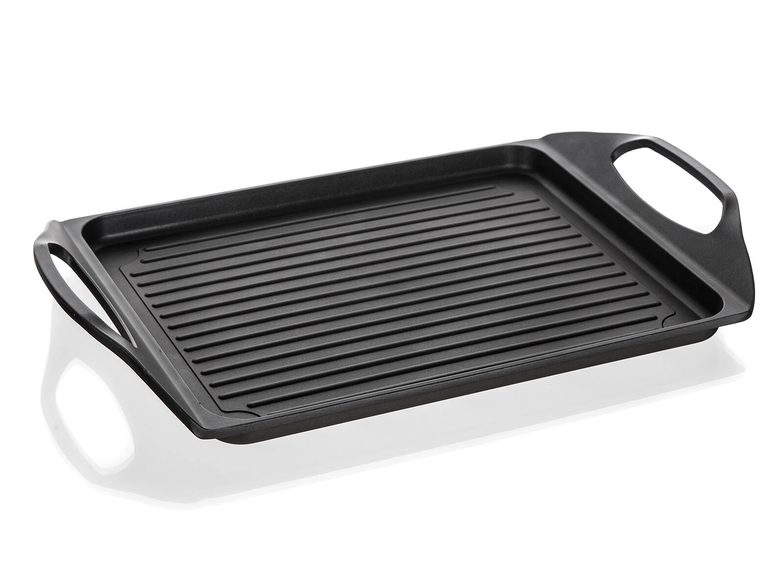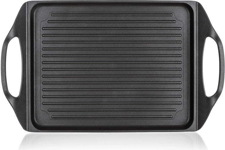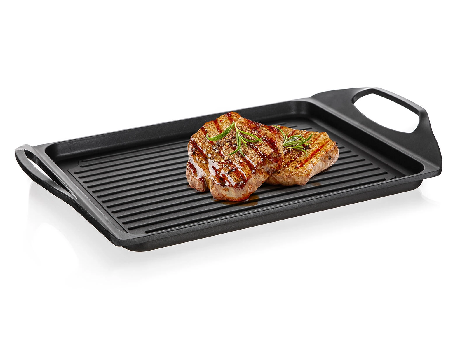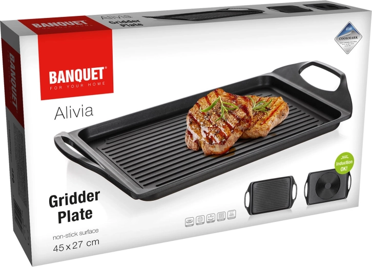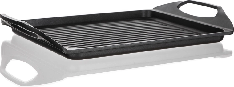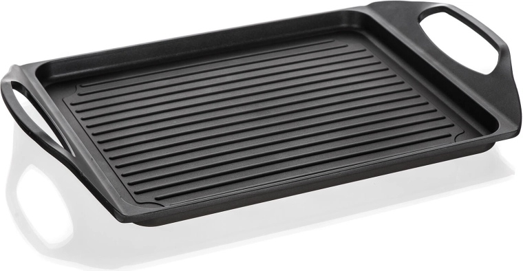 Fedezze fel az ALIVIA grilllap praktikusságát és teljesítményét. A masszív alumínium test kétrétegű tapadásmentes felülettel minimális olajhasználatot, könnyű tisztítást és szép eredményt biztosít sütésnél és grillezésnél egyaránt. A lap ideális steakekhez, halakhoz, kolbászokhoz, zöldségekhez, tükörtojáshoz és palacsintához.