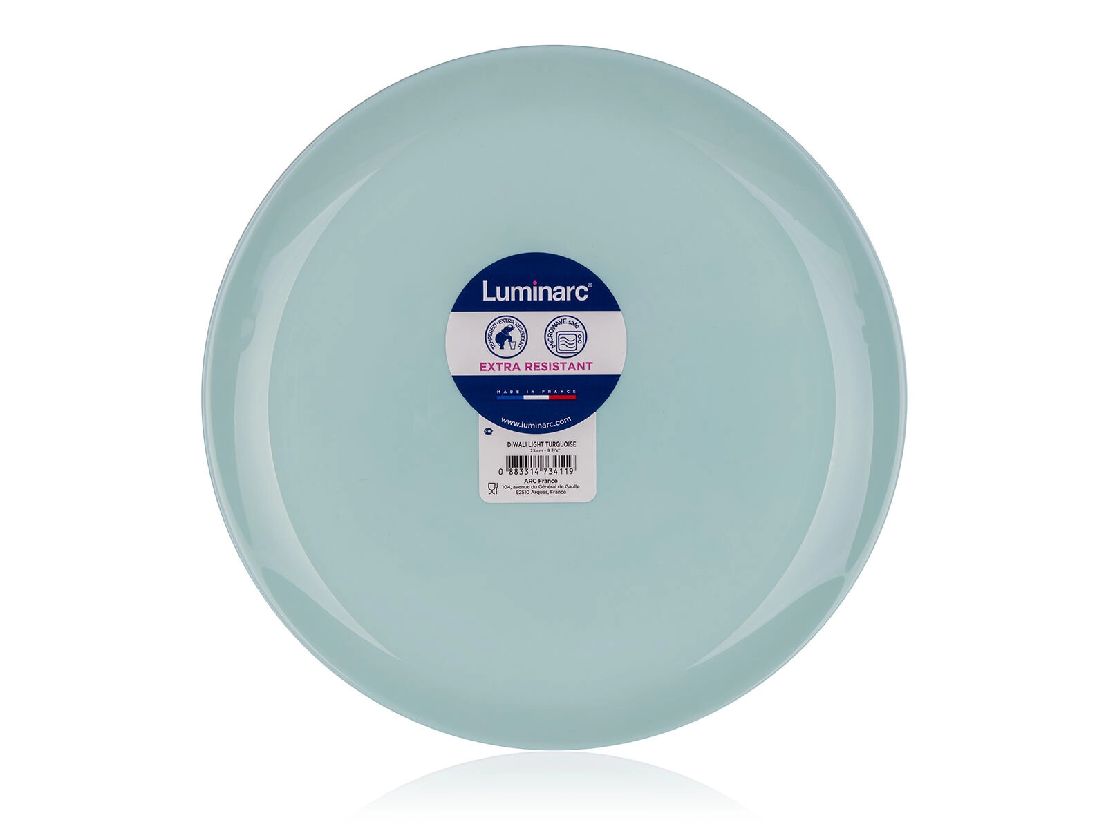 Elegáns, 25 cm átmérőjű DIWALI sekély tányér türkiz színben, ideális a mindennapi étkezésekhez és ünnepi tálaláshoz egyaránt. Edzett üvegből készült, amely karcálló és ellenáll a hősokknak, továbbá mosogatógépben mosható és mikrohullámú sütőben is használható. A nem porózus felületnek köszönhetően könnyen tisztítható, megakadályozza a baktériumok lerakódását és tartja az ételek hőmérsékletét. Emellett 100%-ban újrahasznosítható.