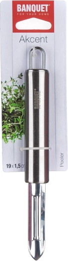 A praktikus, kétoldalas AKCENT hámozó kiváló minőségű rozsdamentes acélból, 19 cm hosszban megkönnyíti a mindennapi alapanyag-előkészítést. Éles és hatékony dupla éllel, könnyű karbantartással és mosogatógépben mosható kivitelben kínál kényelmet. A felakasztó szemnek köszönhetően mindig kéznél lesz, legyen szó professzionális konyháról vagy otthoni használatról.