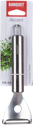 Az AKCENT konyhai eszközcsalád megfelel a profik elvárásainak, ugyanakkor ideális a mindennapi otthoni használatra is. A hámozó praktikus akasztónyílással rendelkezik, így helytakarékos és mindig elérhető. Tartós kivitele lehetővé teszi a gondtalan mosogatógépes tisztítást.