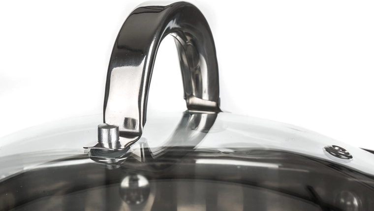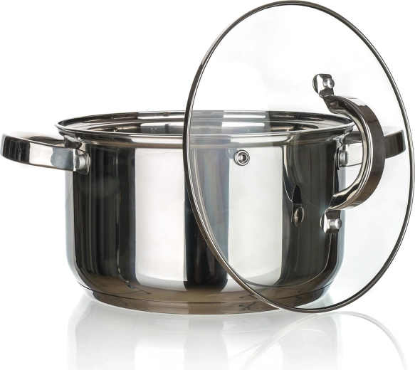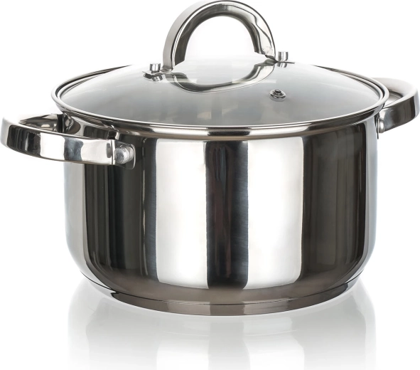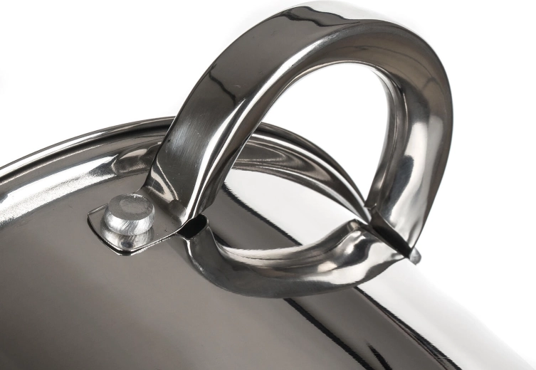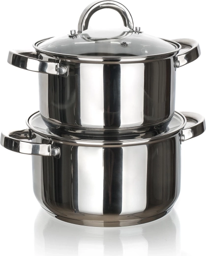 A polírozott rozsdamentes acél felület belül és kívül könnyen tisztítható, és mosogatógépben mosható. A fogantyúk szilárdan csavarozottak a biztos fogásért.