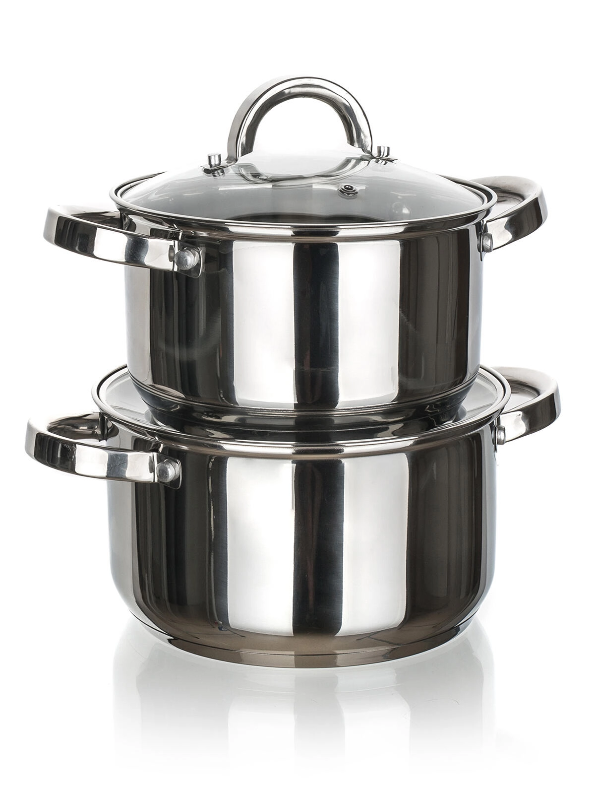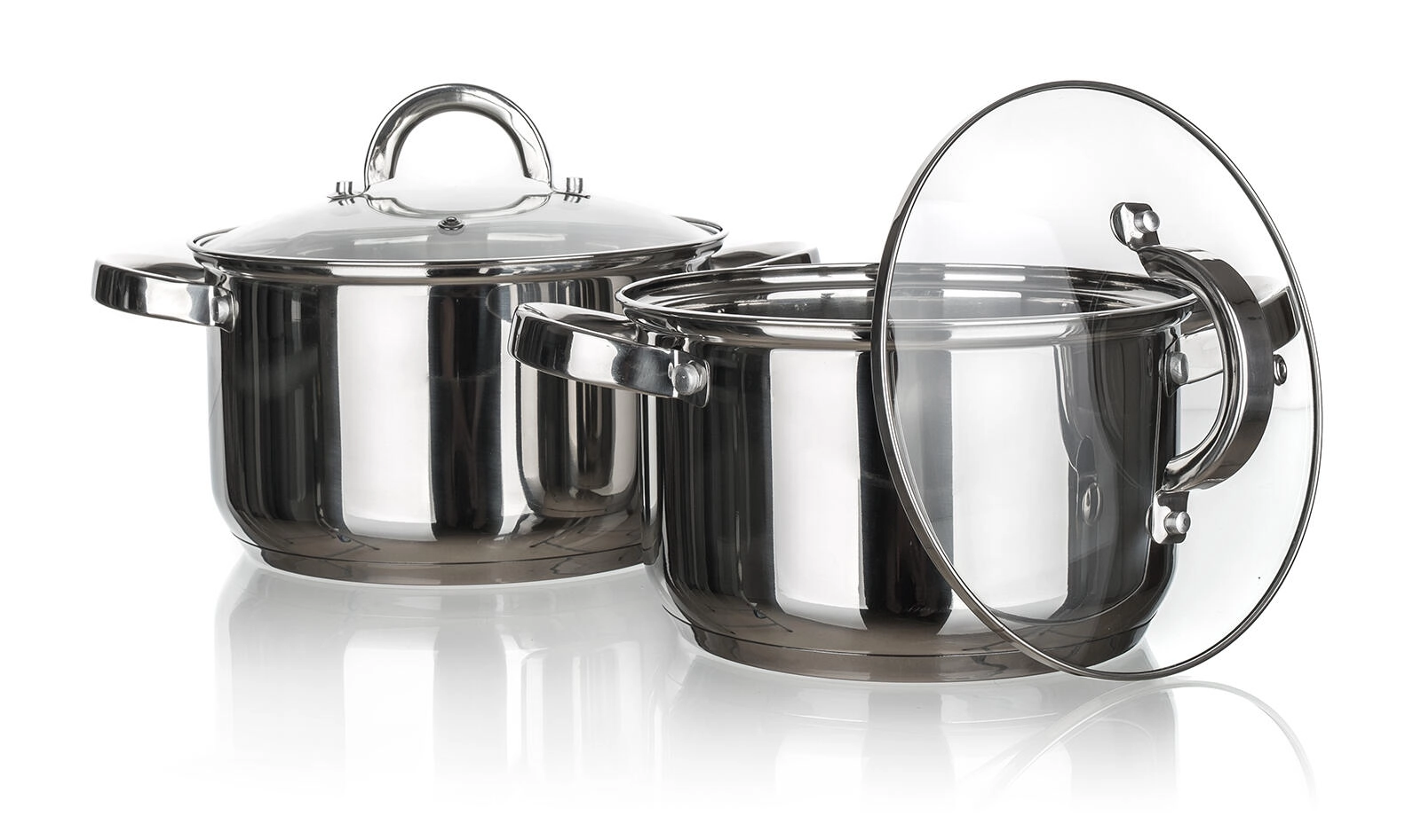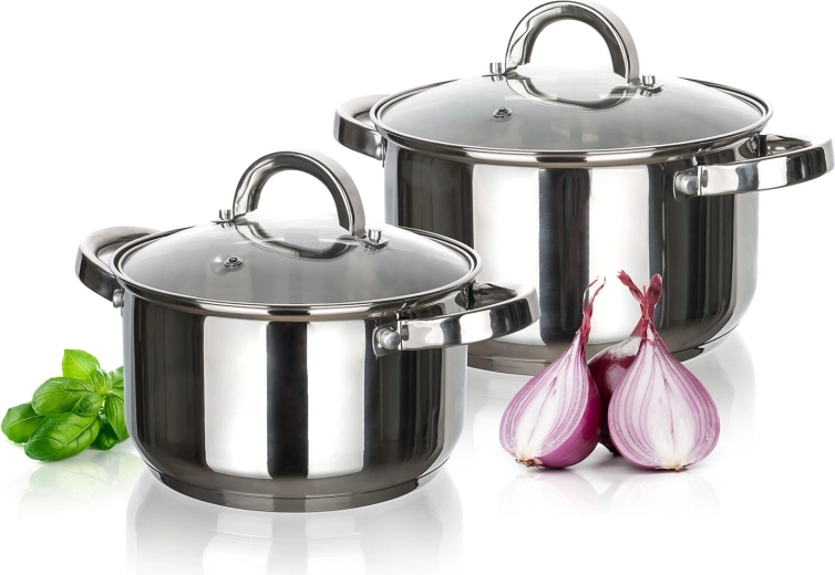A polírozott rozsdamentes acél könnyen tisztítható, korrózióálló és mosogatógépben mosható. Az edények masszív rozsdamentes acél fogantyúkkal és 2,8 mm vastag, többrétegű aljjal rendelkeznek az egyenletesebb hőeloszlásért. A készlet kompatibilis elektromos, gáz-, üvegkerámia- és indukciós főzőlapokkal.