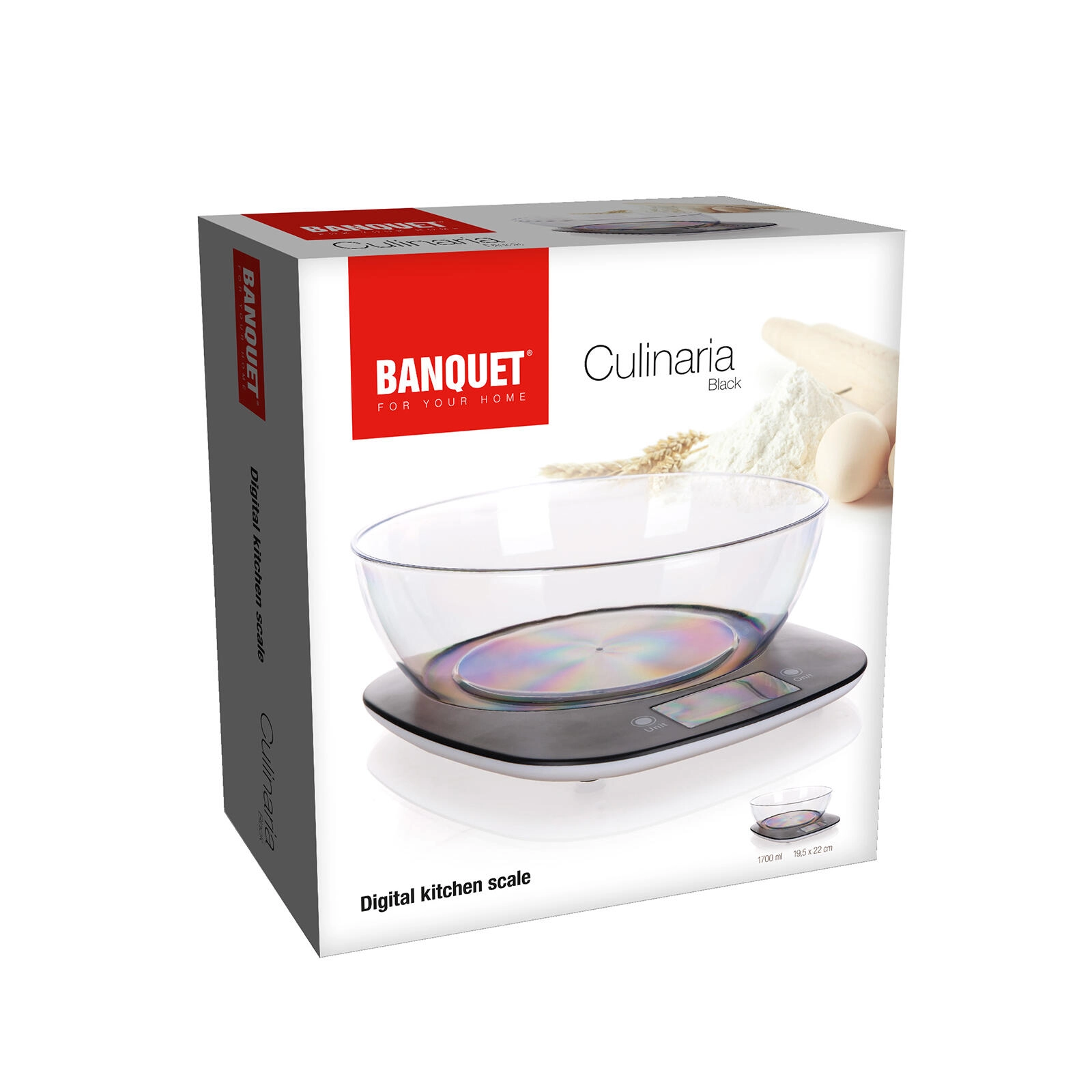 A Culinaria digitális konyhai mérleg ideális segítőtárs a mindennapi főzéshez és sütéshez. Az 1 g pontosságnak és az 5 kg maximális teherbírásnak köszönhetően könnyedén lemérheti az alapanyagokat a tökéletes eredményekért. A 1700 ml-es praktikus tál megkönnyíti a munka folyamatát szilárd és folyékony hozzávalókkal egyaránt.