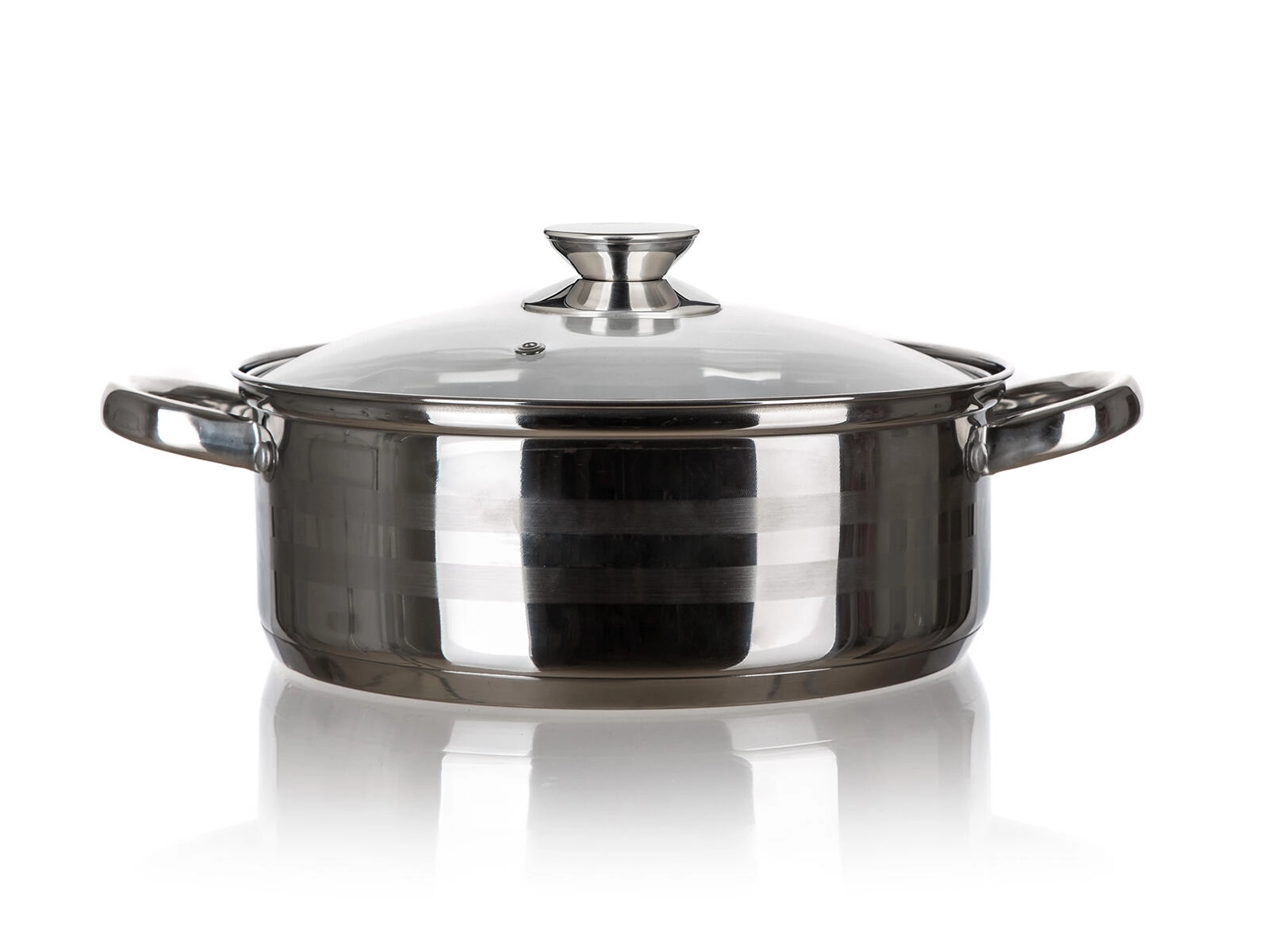 Az elegáns dizájn fényes felületet kombinál három matt csíkkal a külső oldalon. A vastagabb alj és falak hozzájárulnak az egyenletes hőeloszláshoz és a stabilitáshoz a főzőlapon. A fazék kompatibilis gáz-, elektromos, üvegkerámia és indukciós főzőlapokkal, főzés után pedig könnyen elmosható a mosogatógépben.