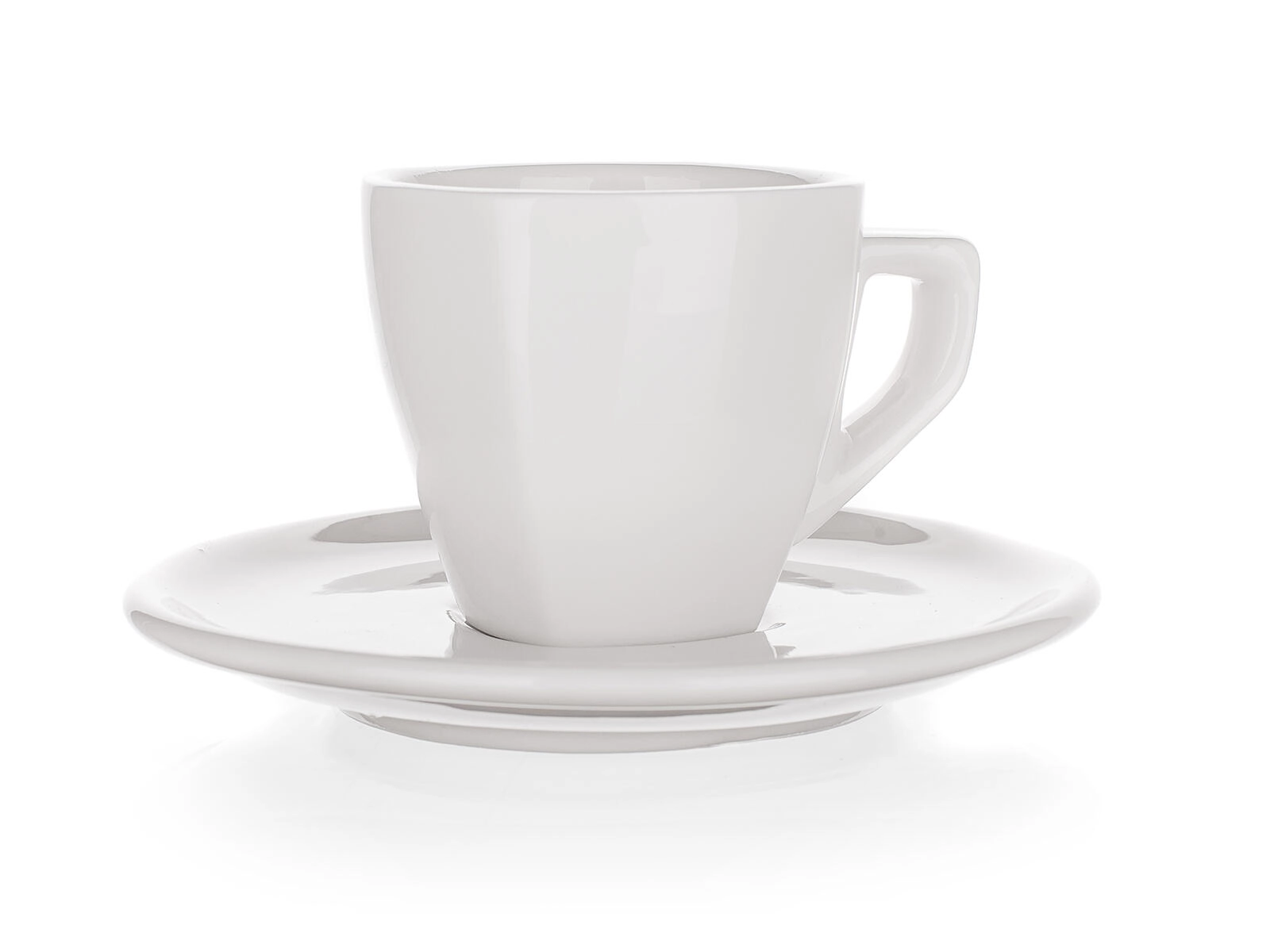 Elegáns ALBA porcelán csésze csészealjjal, 60 ml űrtartalommal, modern, négyzetes kialakítással – ideális eszpresszóhoz. A minőségi fehér máz tartósságot és könnyű tisztítást biztosít. Mosogatógépben mosható és alkalmas vendéglátóipari használatra.