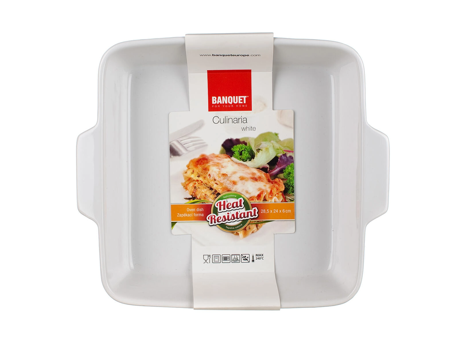 A CULINARIA White téglalap alakú kerámia tepsi 28,5 × 24 × 6 cm méretben ideális lasagnéhoz, rakott tésztákhoz, zöldségekhez és édes felfújtakhoz. A minőségi kerámia kiválóan tárolja és fokozatosan adja le a hőt, így az ételek egyenletesen átsülnek, és tálaláskor tovább maradnak melegek.
