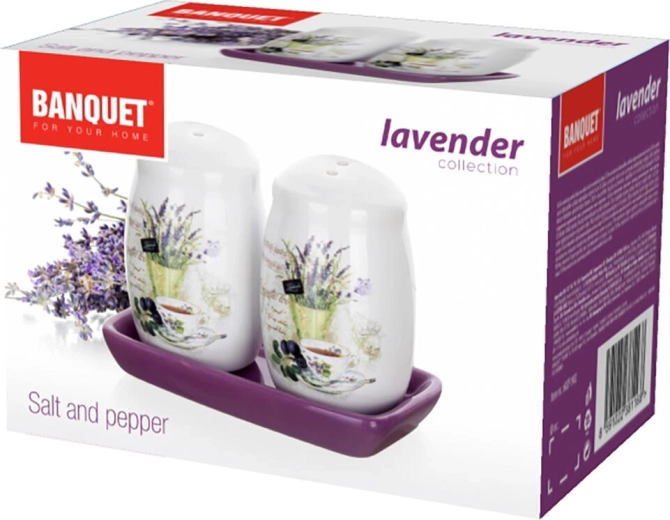 Stílusos kerámia sószóró és borsszóró levendulamintával, amely provanszi hangulatot visz konyhájába. A szett része egy praktikus lila tálca is. A máznak köszönhetően könnyen tisztítható, és mosogatógépben is használható (a hosszú távú megjelenés megőrzése érdekében kézi mosogatást javaslunk).