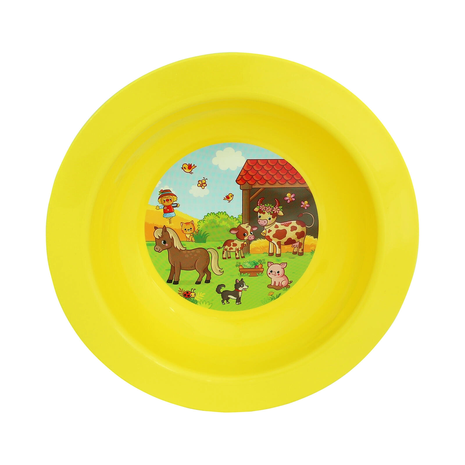 Vidám, FARMA motívumos gyermek mélytányér, amely kellemesebbé teszi minden étkezést. Könnyű és tartós műanyag, praktikus 17,3 cm átmérő és forma, amely alkalmas levesekhez és pépekhez is. Elérhető színek keverékében a gondtalan, örömteli terítéshez.