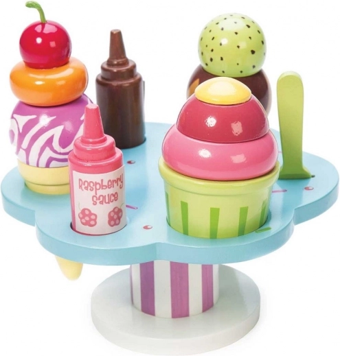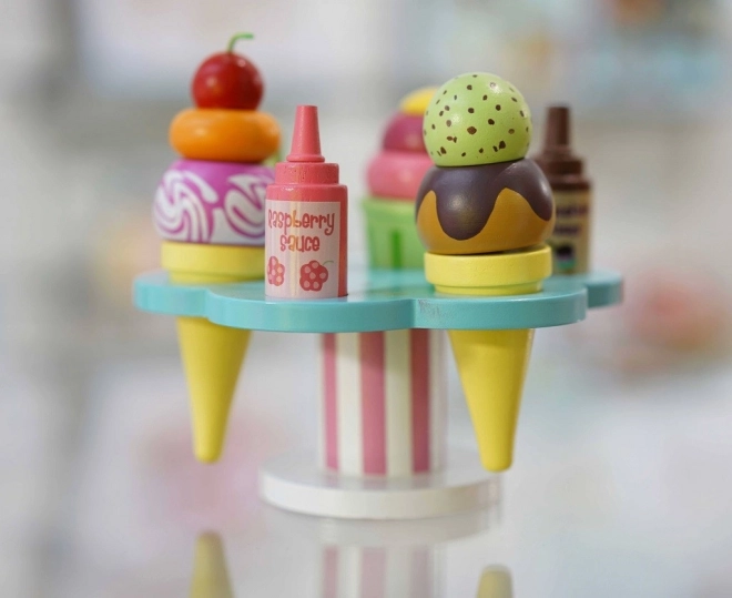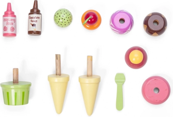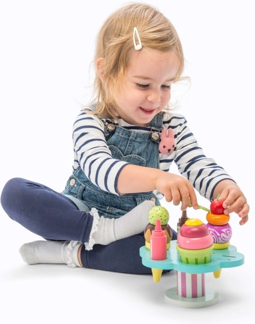 A levehető gombócok, a tölcsérek és a pohár ösztönzik az „ízek” keverését és a díszítést málnás vagy csokoládészósszal. Tökéletes fagylaltozó-szerepjátékhoz.