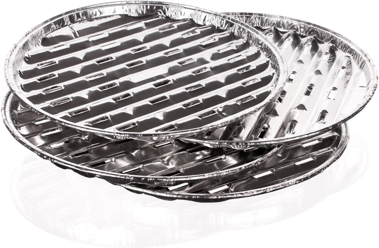 Élvezze a tisztább és egészségesebb grillezést a 30 cm átmérőjű, kerek alumínium tálcákkal. A 75 mikron vastag, tartós alumíniumnak köszönhetően jól tartják a formájukat, egyenletesen vezetik a hőt és megelőzik a szaftok odaégését. Ideálisak húsokhoz, zöldségekhez, halakhoz és olyan kényes ételekhez, amelyek különben átesnének a rácson.