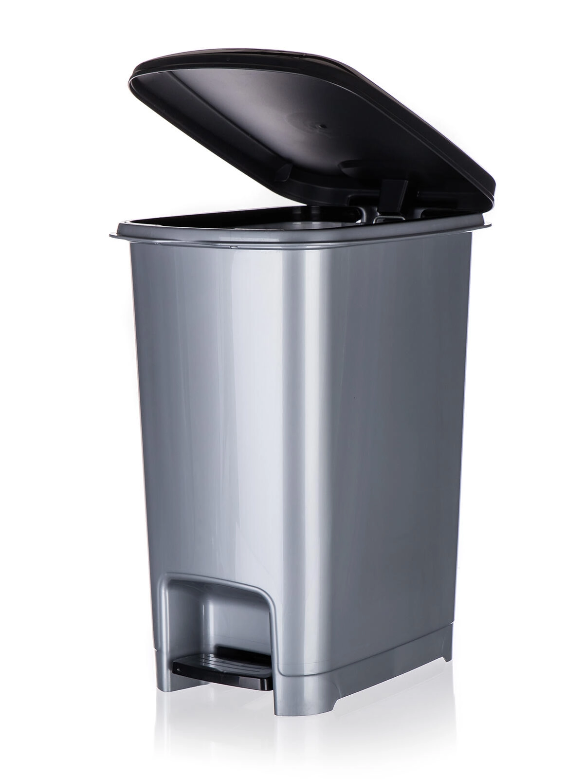 A STEP 25 l pedálos szemetes megbízható és kényelmes megoldást kínál a mindennapi hulladékgyűjtéshez és -válogatáshoz. A pedálmechanizmusnak köszönhetően a fedél kézérintés nélkül nyitható, ami ideális a higiénikus működéshez konyhákban és irodákban. A kompakt, téglalap alakú kialakításnak hála a szemetes könnyen elfér a fal mellett vagy szűkebb helyeken.