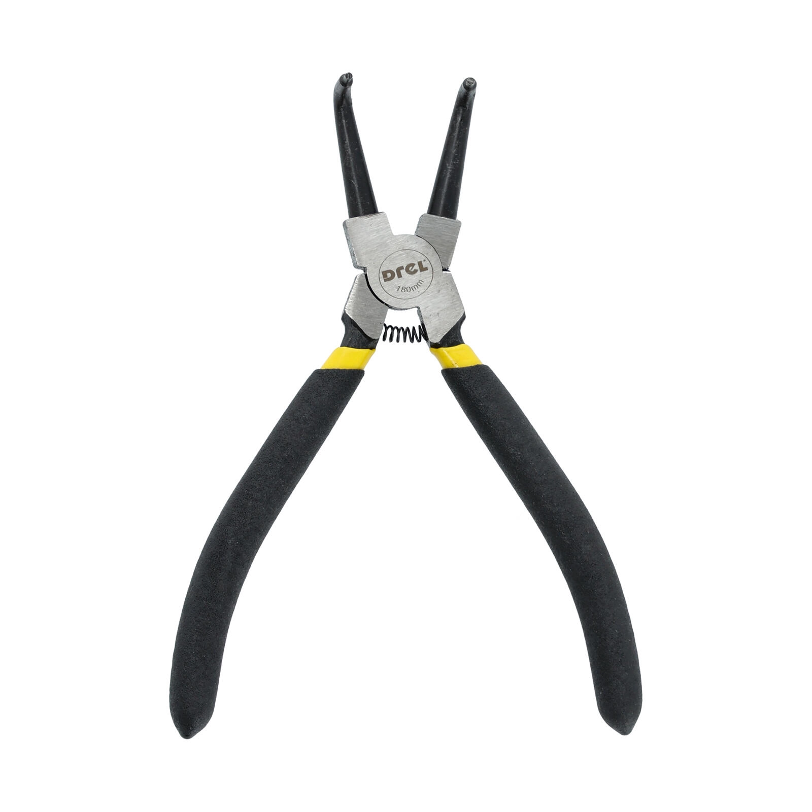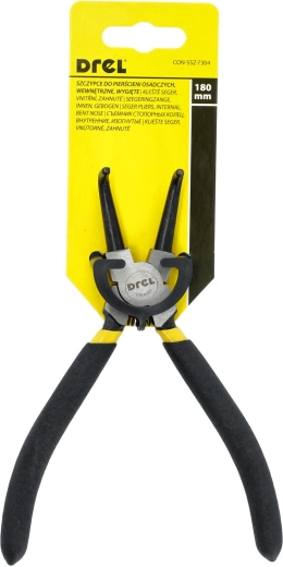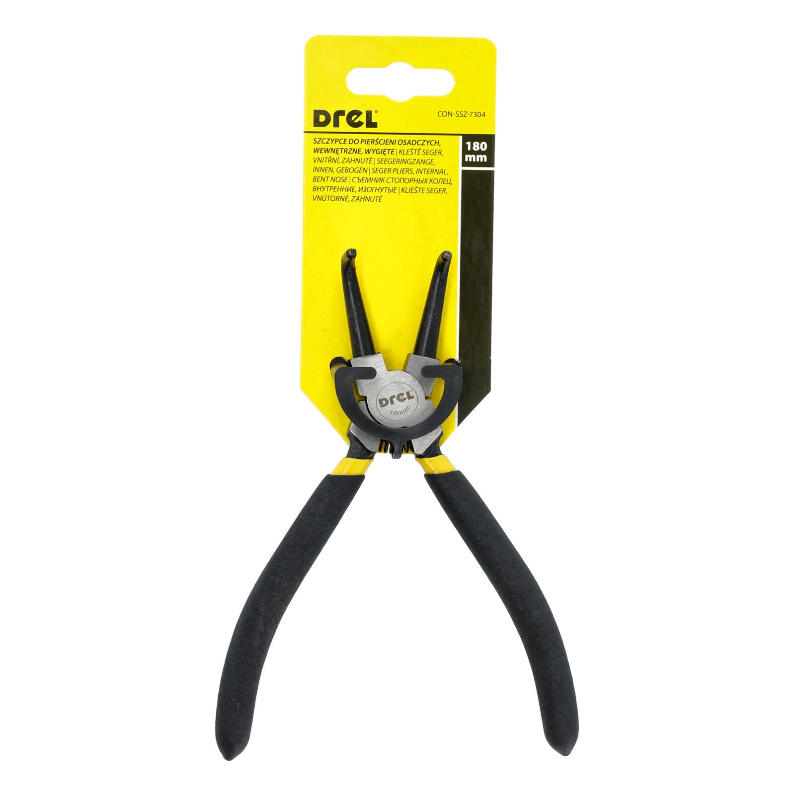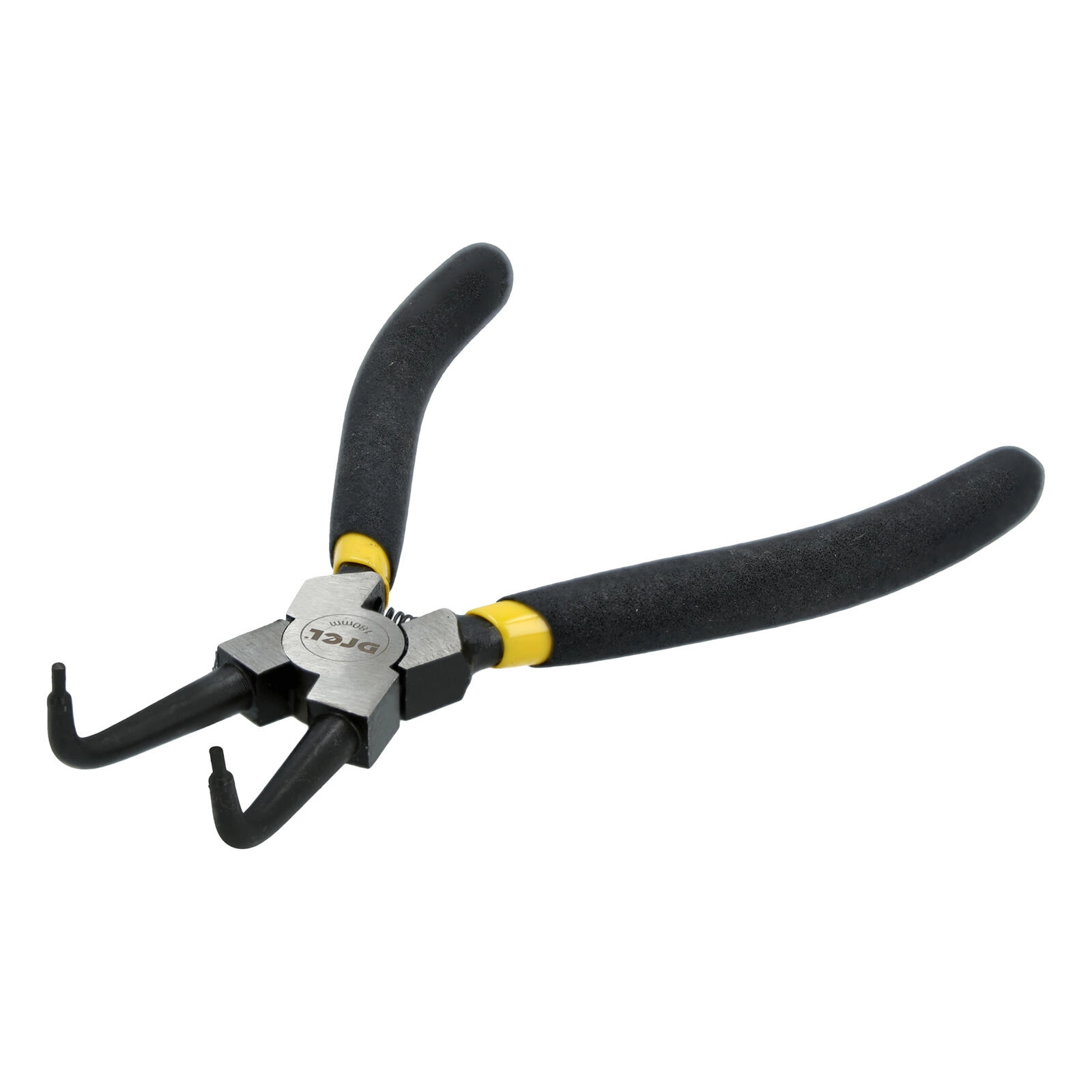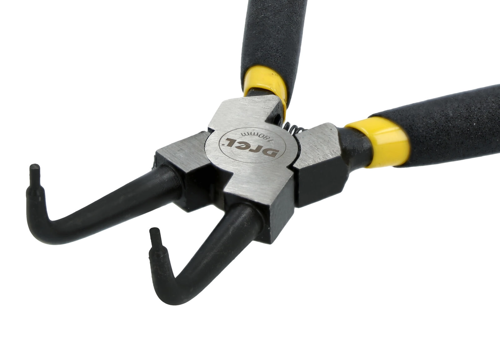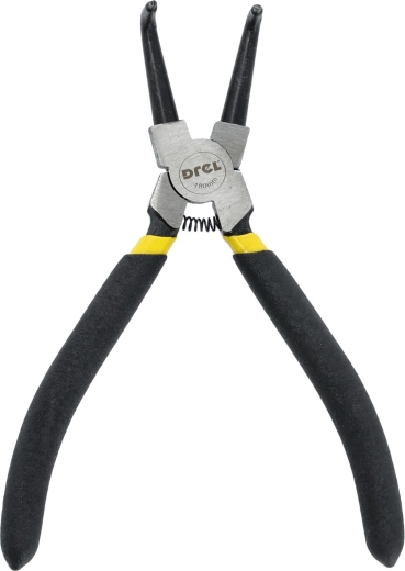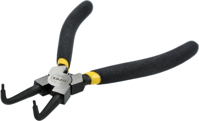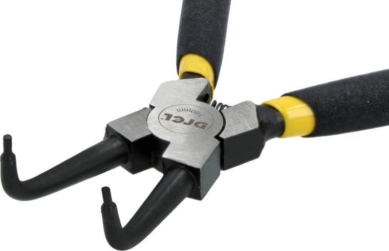 Ez a DREL belső Seeger-fogó hajlított végeivel megkönnyíti a biztosítógyűrűk kezelését furatokban és csapágyfészkekben. Az ergonomikus, csúszásmentes felületű markolatoknak és a rugós rásegítésnek köszönhetően precíz munkát végezhet szűk helyeken is, megerőltetés nélkül.