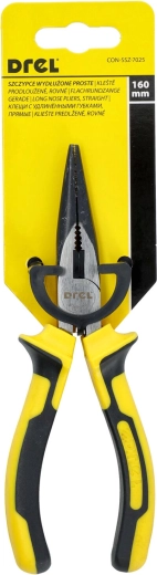 A 160 mm-es DREL rádiós csípőfogó precíz kezelést biztosít apró alkatrészekkel és vezetékekkel még nehezen hozzáférhető helyeken is. A keskeny, recézett pofák megbízható fogást nyújtanak, míg az integrált vágóél tiszta vágást biztosít vékony vezetékeken.