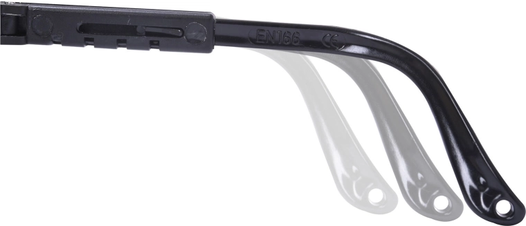 A állítható száraknak köszönhetően a szemüveget könnyen személyre szabhatja a biztonságos és stabil illeszkedés érdekében. Az áttetsző lencsék torzításmentes, kiváló láthatóságot nyújtanak, amit nagyra értékel a precíz műhelymunka, szerelés, csiszolás és takarítás során.
