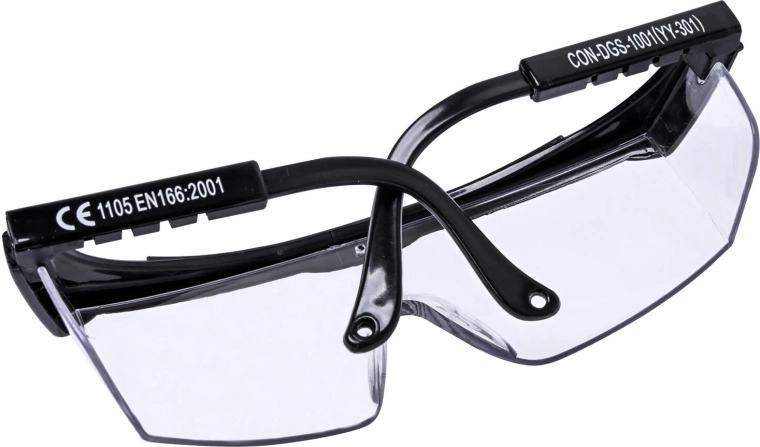 A körbefutó, áttetsző lencsék szélesítik a látómezőt, és oldalirányból is védik a szemet forgács, por és fröccsenő folyadékok ellen.
