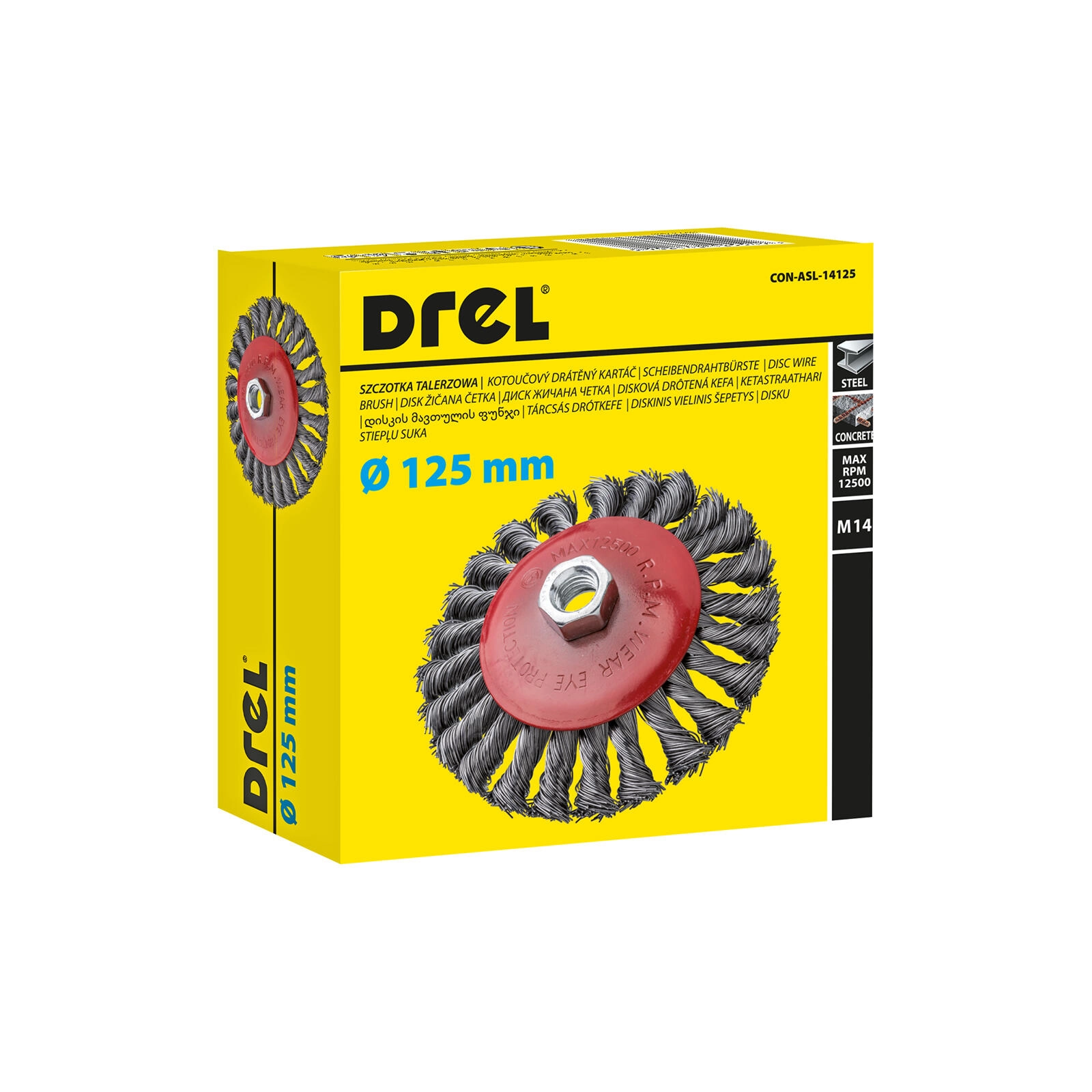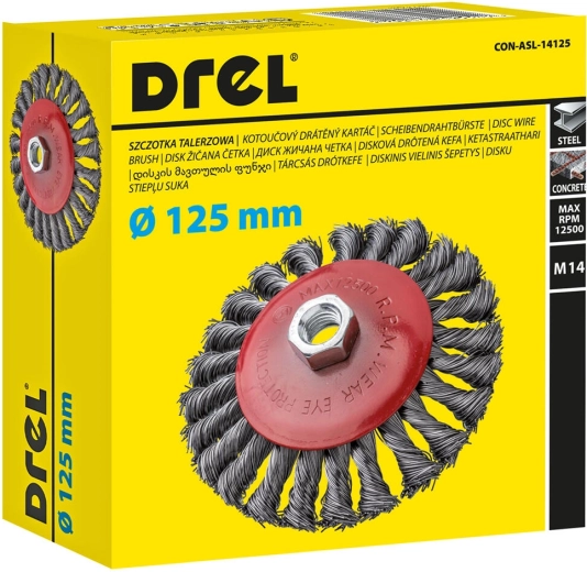 A 125 mm átmérőjű acél tányérkefe ideális fémfelületek intenzív tisztítására. A masszív, sodrott huzalok nagy anyagleválasztást és tartósságot biztosítanak mindennapos használat mellett. A szabványos M14 menet kompatibilitást garantál a legtöbb sarokcsiszolóval.