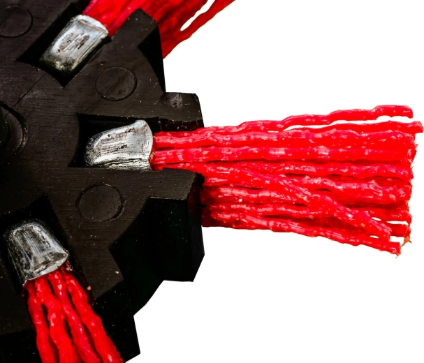 A masszív középrész és az erős, 27 mm-es nejlonszálak stabilitást biztosítanak magasabb fordulatszámon is, valamint ellenállnak a kopásnak.
