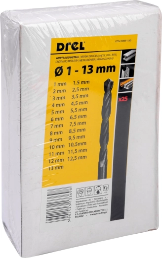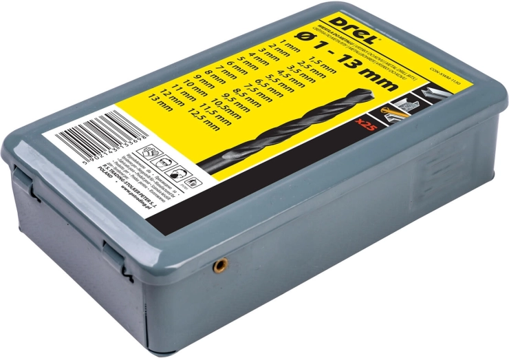 HSS fémfúrókészlet 1,0–13,0 mm, 25 darab