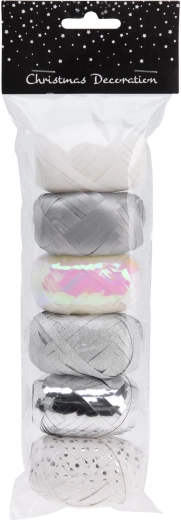 Adj stílust az ajándékcsomagolásnak a klasszikus fehér és ezüst színű csillogó kötözőszalaggal. Az egyenként 8 m hosszúságnak köszönhetően könnyedén készíthetsz masnikat, spirálokat és finom díszítéseket dobozokra, csokrokra vagy ünnepi dekorációkra.
