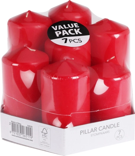 Elegáns, 7 különböző méretű piros gyertyaszett a meghitt otthoni hangulathoz. Ideális beltéri dekorációnak, esküvői asztalokhoz és szezonális díszítéshez. Hosszú égési idő, egységes, 55 mm-es átmérő és minőségi viasz a szép, egyenletes lángért.