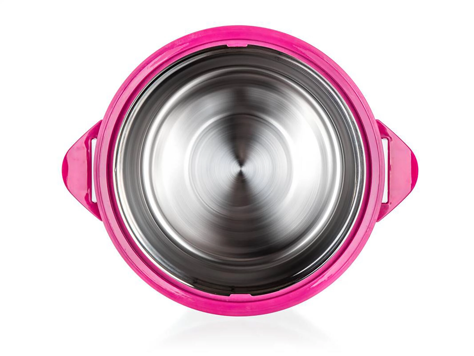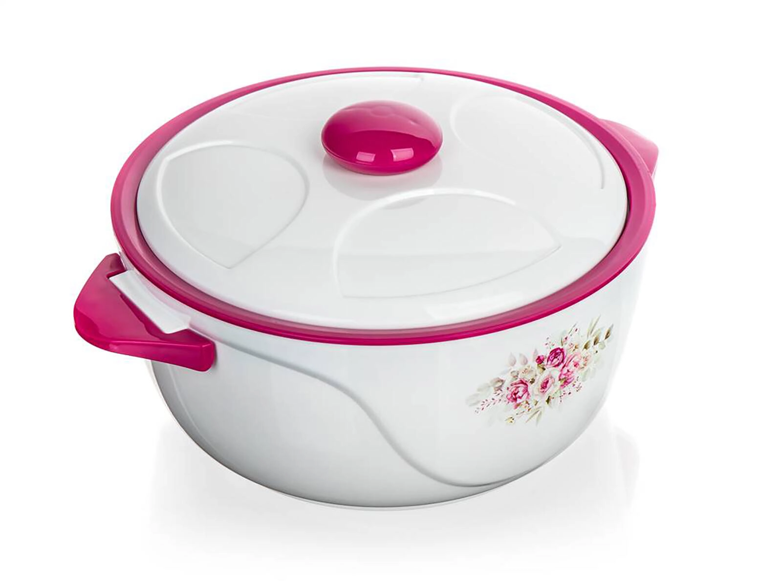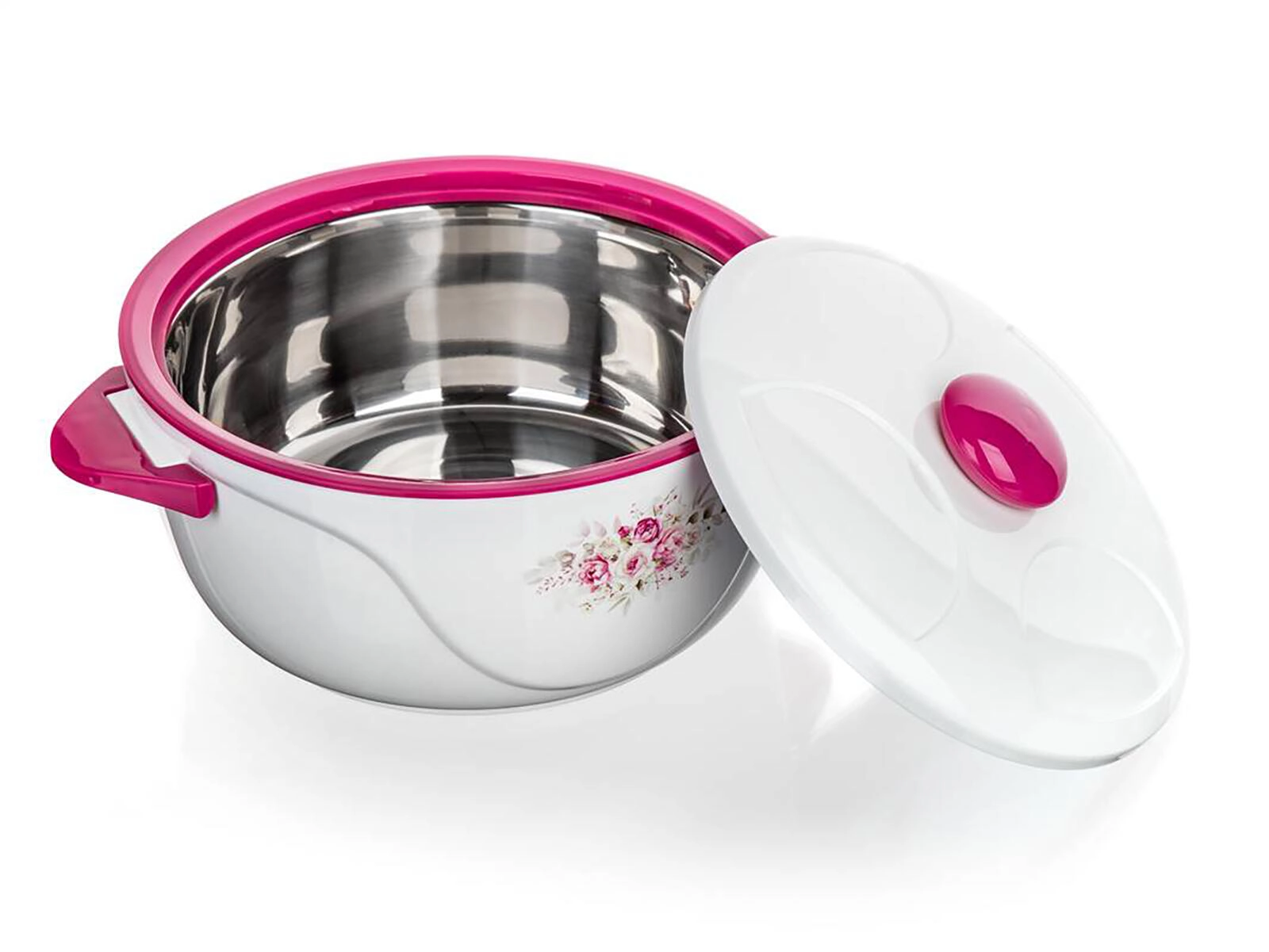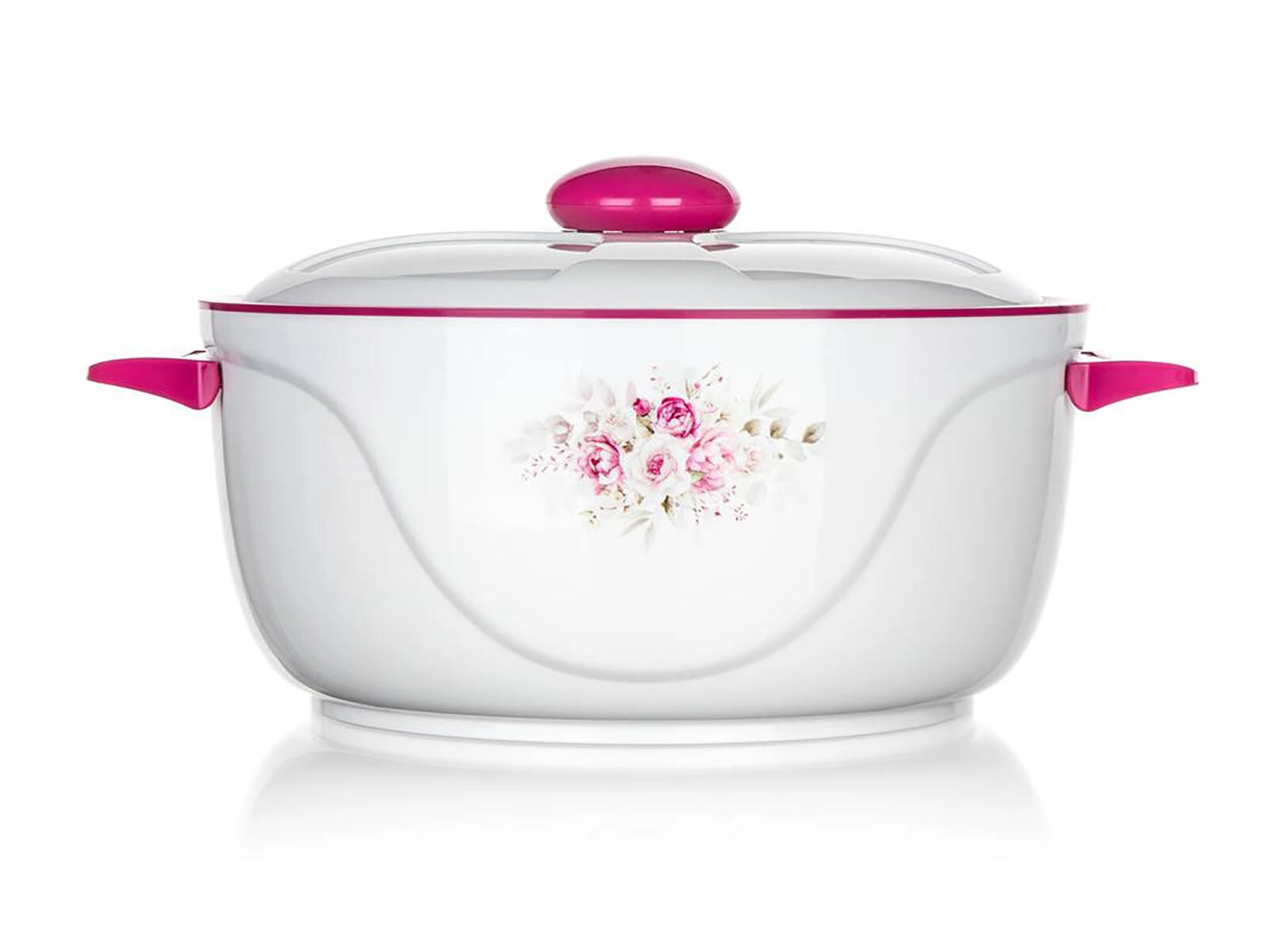 A ROSE 3,5 l termo tál praktikus segítőtárs minden konyhában. A rozsdamentes belső betét és a PUR szigetelés kombinációja megbízhatóan tartja az ételek hőmérsékletét tárolás és szállítás közben is. A virágmintás, rózsaszín részletekkel díszített stílusos design ráadásul szépen kiegészíti az asztalt tálaláskor.