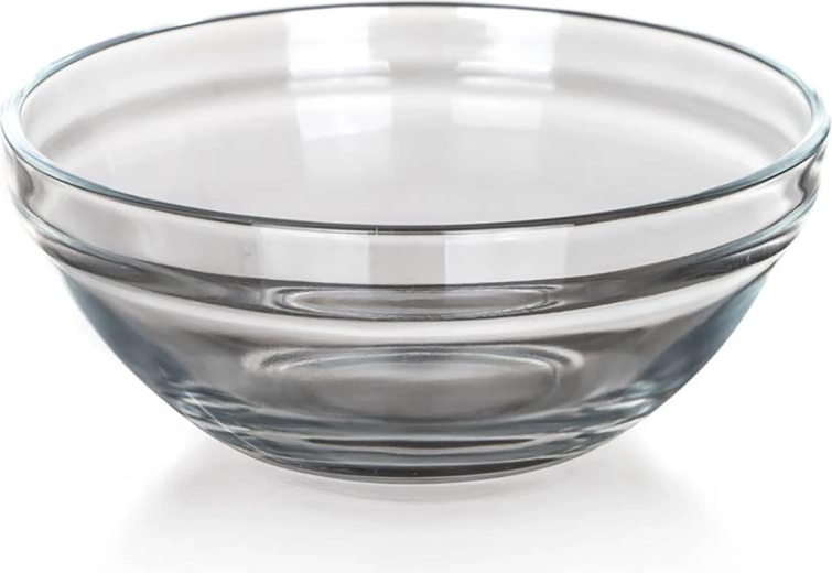 A 12,5 cm átmérőjű, univerzális Siera üvegtál ideális a mindennapi konyhai használatra. Sokoldalú felhasználást kínál ételek tárolásához és stílusos tálaláshoz egyaránt. Praktikus formájának köszönhetően több darab egymásba rakható, így helyet takarít meg a szekrényekben.