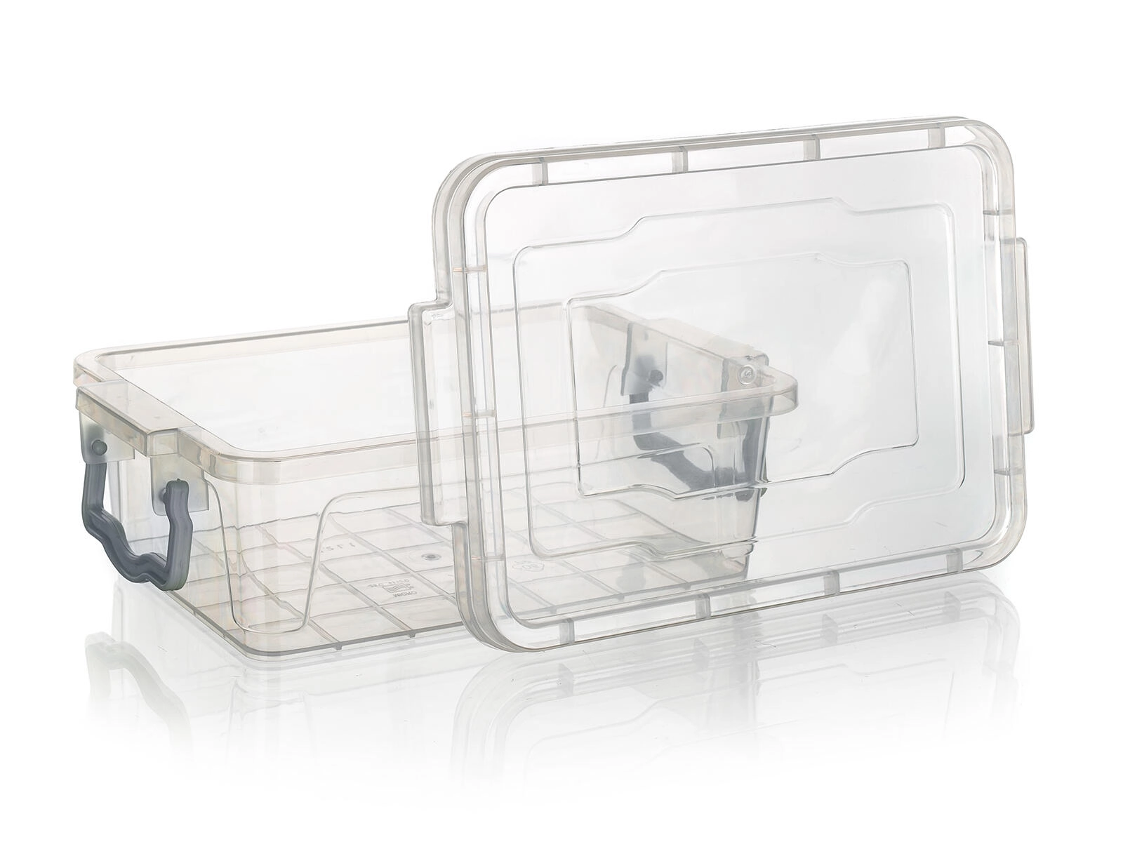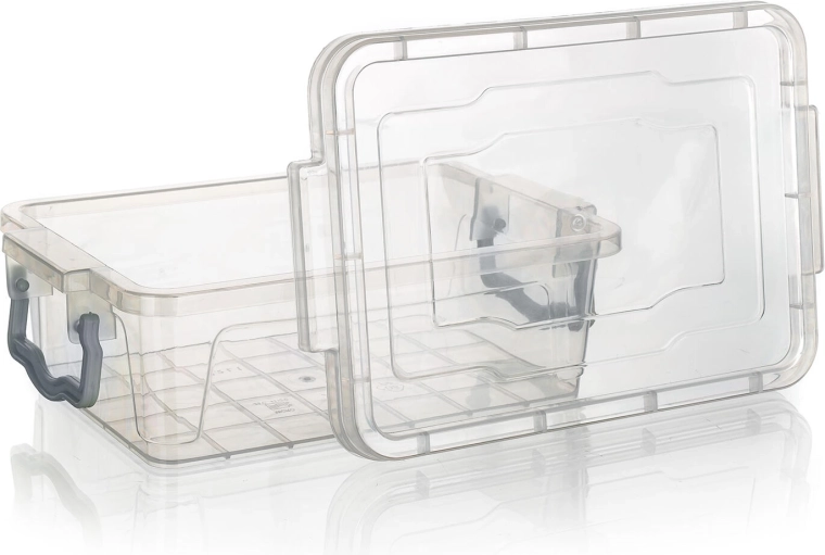 Átlátszó doboz, türkiz fogantyúk