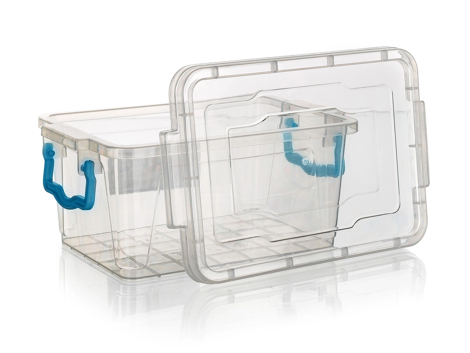 - Átlátszó doboz a tartalom gyors ellenőrzéséhez