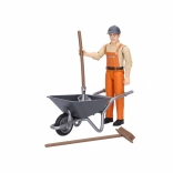 Élvezze a szórakoztató játékórákat a teljes Bruder Bworld városi készlettel figurával. A figurának mozgatható végtagjai vannak, amelyek lehetővé teszik különböző eszközök, mint például a talicska, seprű és lapát könnyű fogását. Ez a készlet minőségi ABS műanyagból készült Németországban, biztosítva a tartósságot és a biztonságot a játék során.