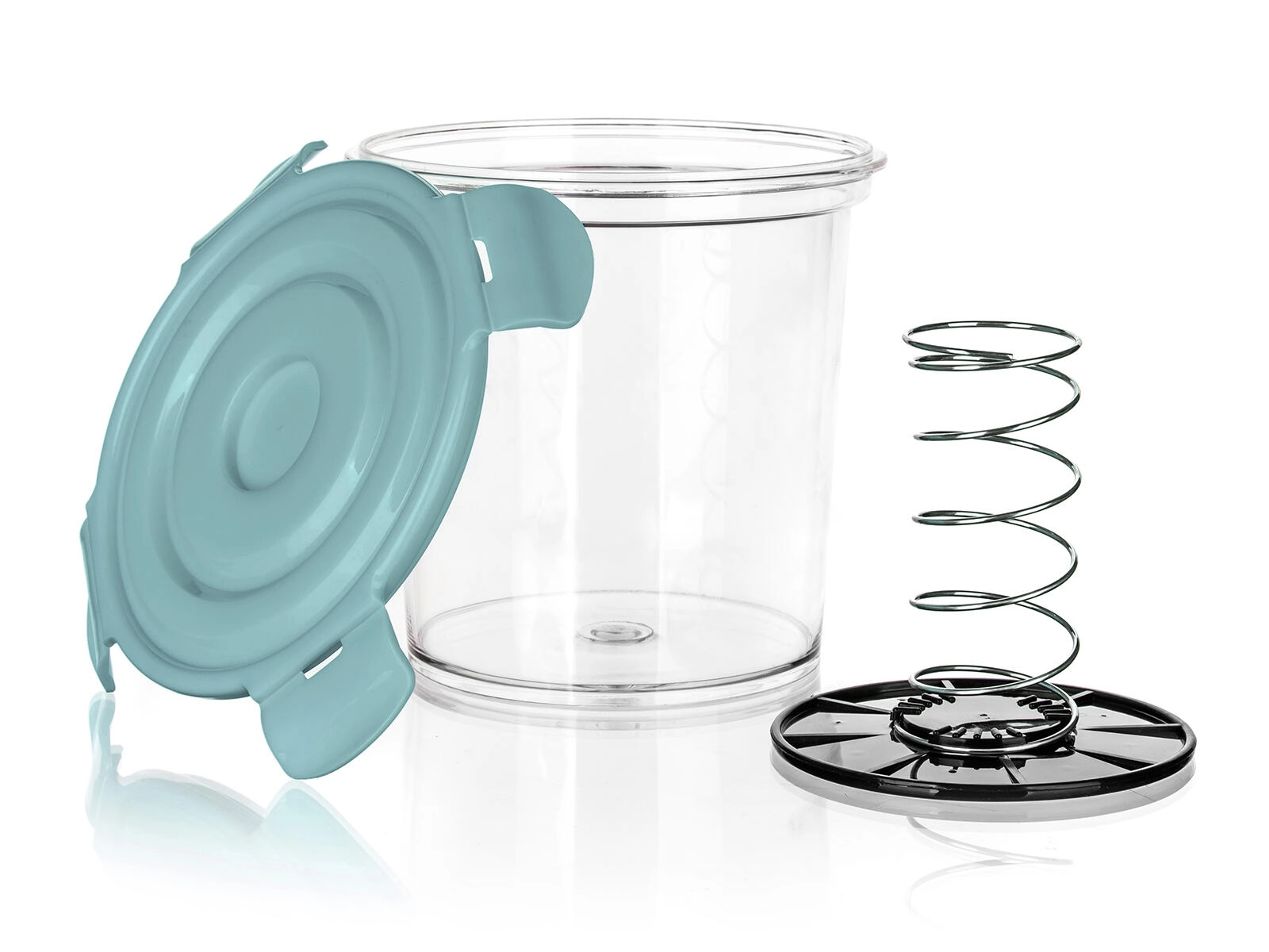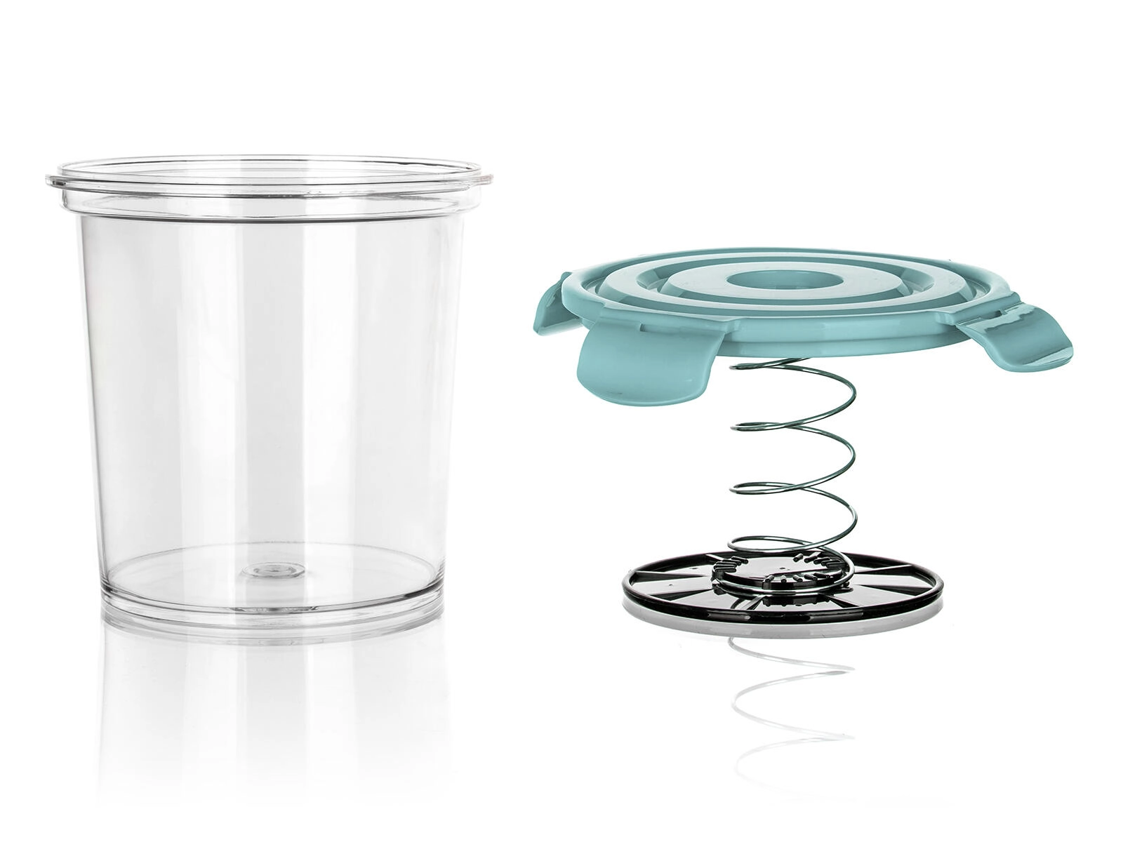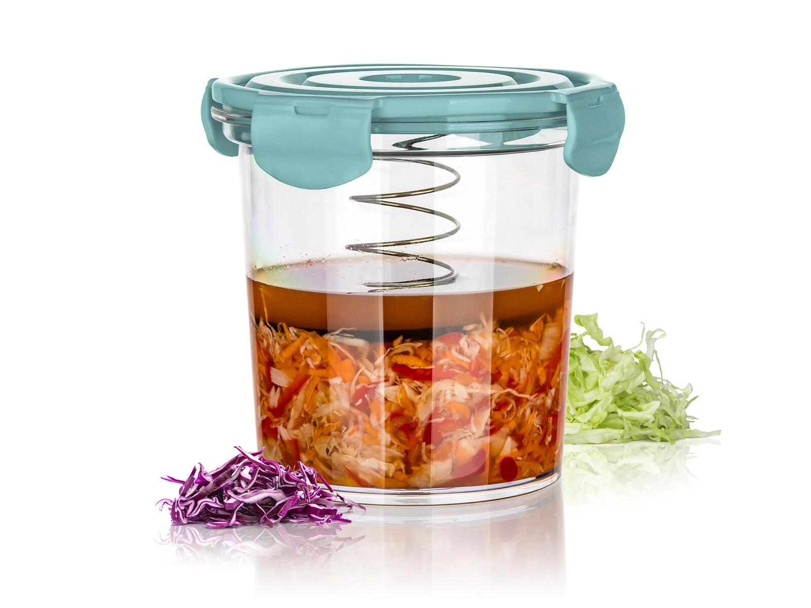 Praktikus 4 literes edény pácoláshoz és marináláshoz, klipszes tetővel és beépített rugóval, amely biztosítja, hogy az alapanyagok folyamatosan a lé alatt maradjanak, levegőhozzáférés nélkül. A szoros zárásnak, az átlátszó testnek és a könnyen lenyomható tetőnek köszönhetően ideális házi erjesztéshez, savanyításhoz és az ételek biztonságos szállításához is.