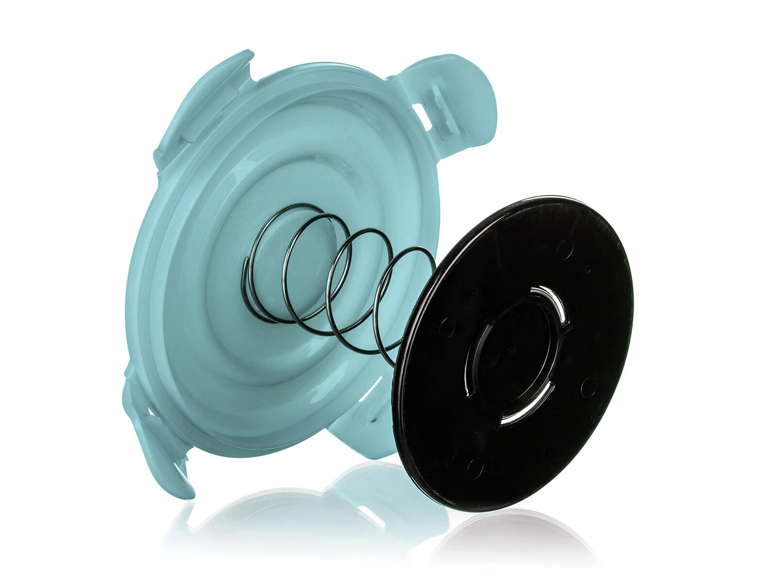 A beépített rugó nyomólappal egyenletes nyomást fejt ki, így a zöldség és a hús folyamatosan a pác vagy a lé szintje alatt marad – oxidáció nélkül, jobb ízzel.