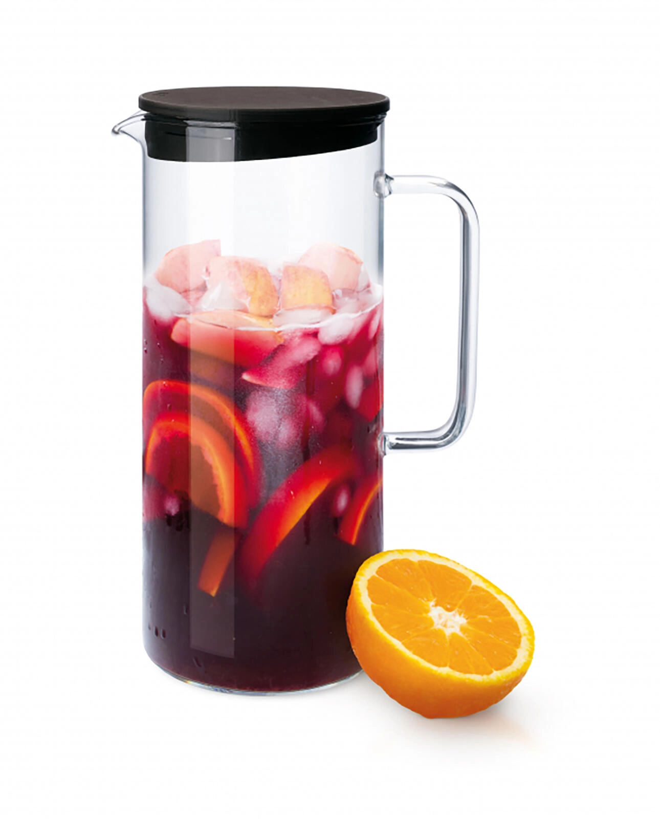 Az edzett műanyag tető visszatartja a jégkockákat, a citruskarikákat és a fűszernövényeket, így tiszta, rendetlenkedés nélküli kiöntést tesz lehetővé. Az ergonomikus fül megkönnyíti a kezelést és csökkenti a kicsúszás kockázatát. Az egészségre ártalmatlan anyagoknak és a mosogatógépes tisztíthatóságnak köszönhetően a karbantartás maximálisan egyszerű.