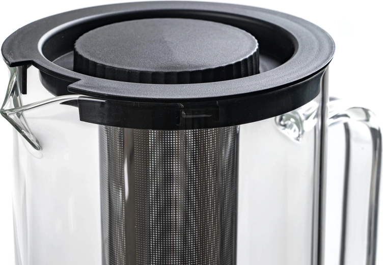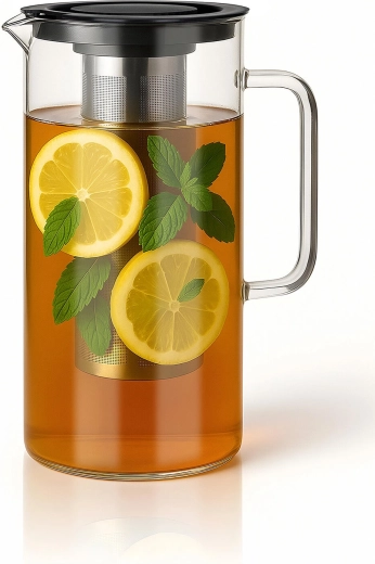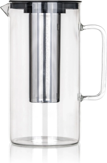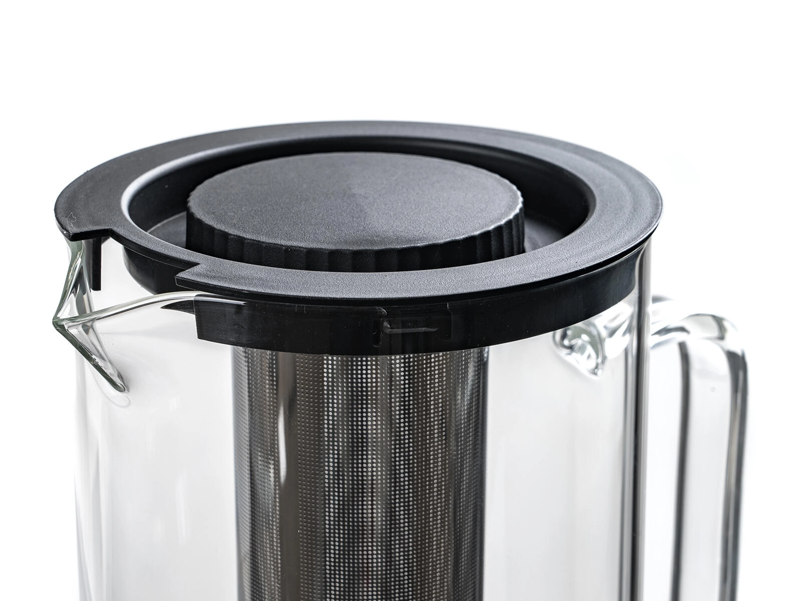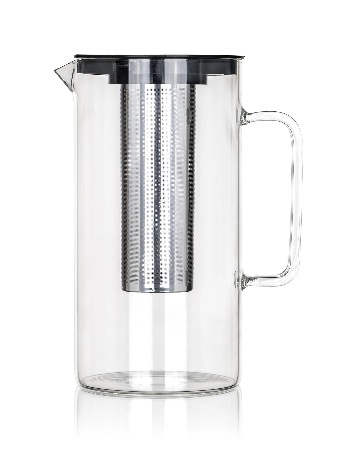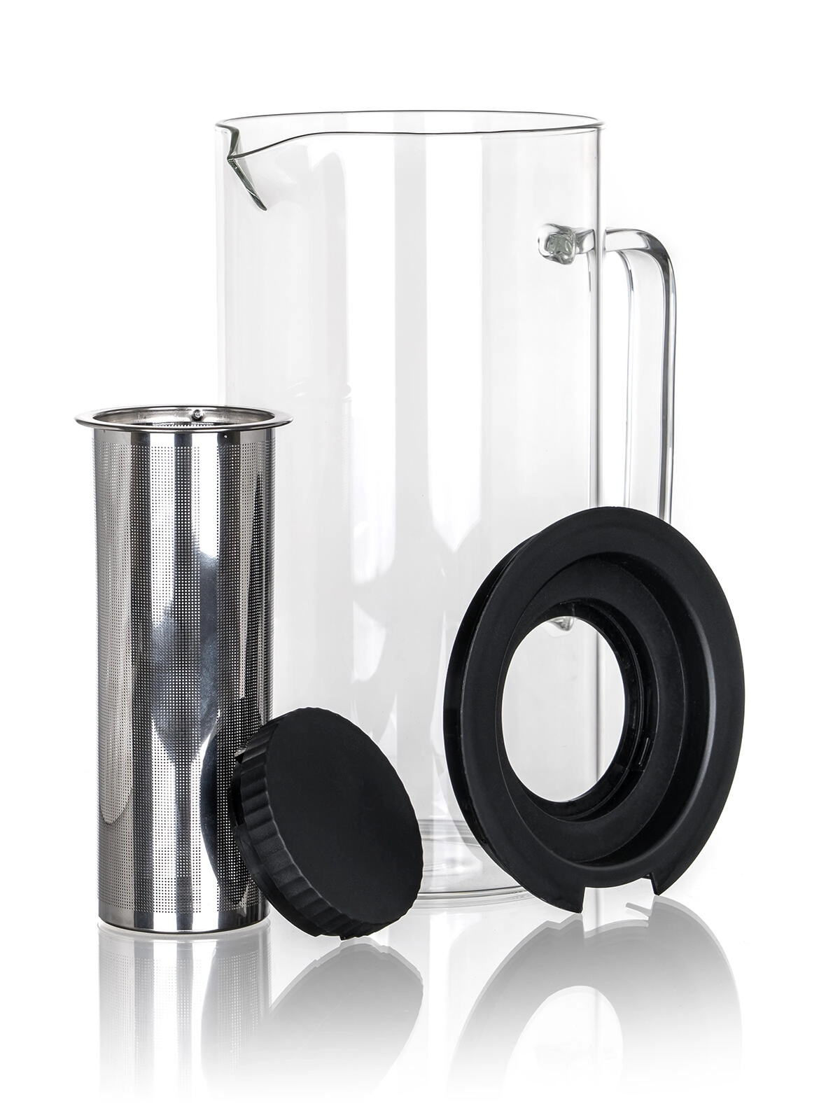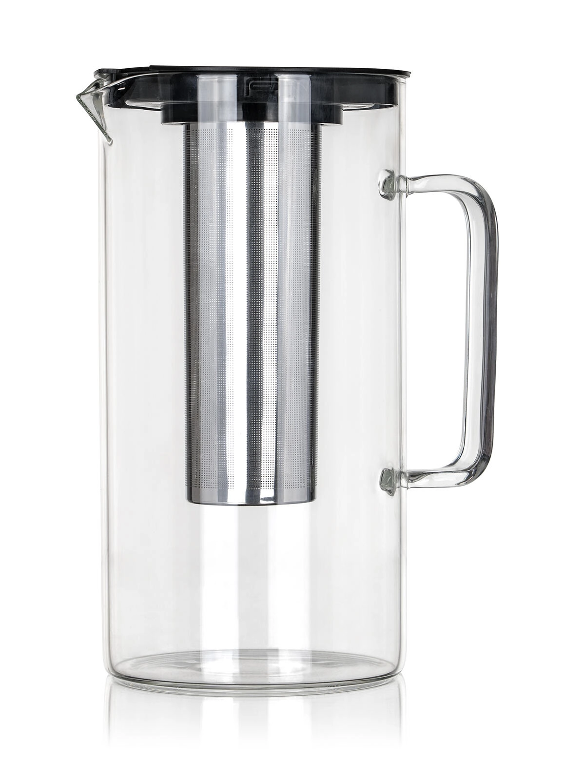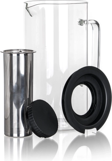 Élvezze az otthoni limonádékat, jeges teákat és forró italokat egyetlen praktikus kancsóban. Az átlátszó üveg jól láthatóvá teszi a tartalmat, míg a finom perforációjú, minőségi rozsdamentes acél szűrő bent tartja a gyümölcsöt, a gyógynövényeket és a tealeveleket. A műanyag fedélnek köszönhetően az ital nem szellősödik ki, és tovább friss marad.