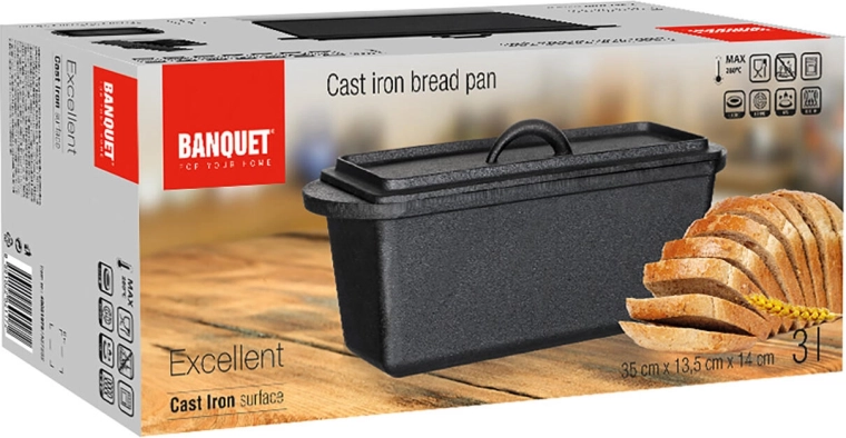 Az EXCELLENT öntöttvas kenyérforma fedővel ideális mindennapos sütéshez: veknikhez, toastkenyérhez és édes pékárukhoz. A masszív öntöttvas kiválóan felhalmozza és egyenletesen adja át a hőt, így a pékáruk és a rakott ételek gyorsabban, kevesebb energiafelhasználással készülnek el. A fedő segít megőrizni a nedvességet, és ideális feltételeket teremt a rugalmas bélzethez és a ropogós kéreghez.