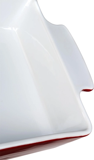A CULINARIA téglalap alakú sütőtál minőségi kerámiát ötvöz elegáns piros külsővel és fehér belső mázzal. A vastag falak kiválóan akkumulálják és egyenletesen adják le a hőt, így az ételek stabilan sülnek, a szélek odakapása nélkül. Ideális családi rakott fogásokhoz, édes és sós sütésekhez.