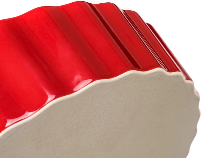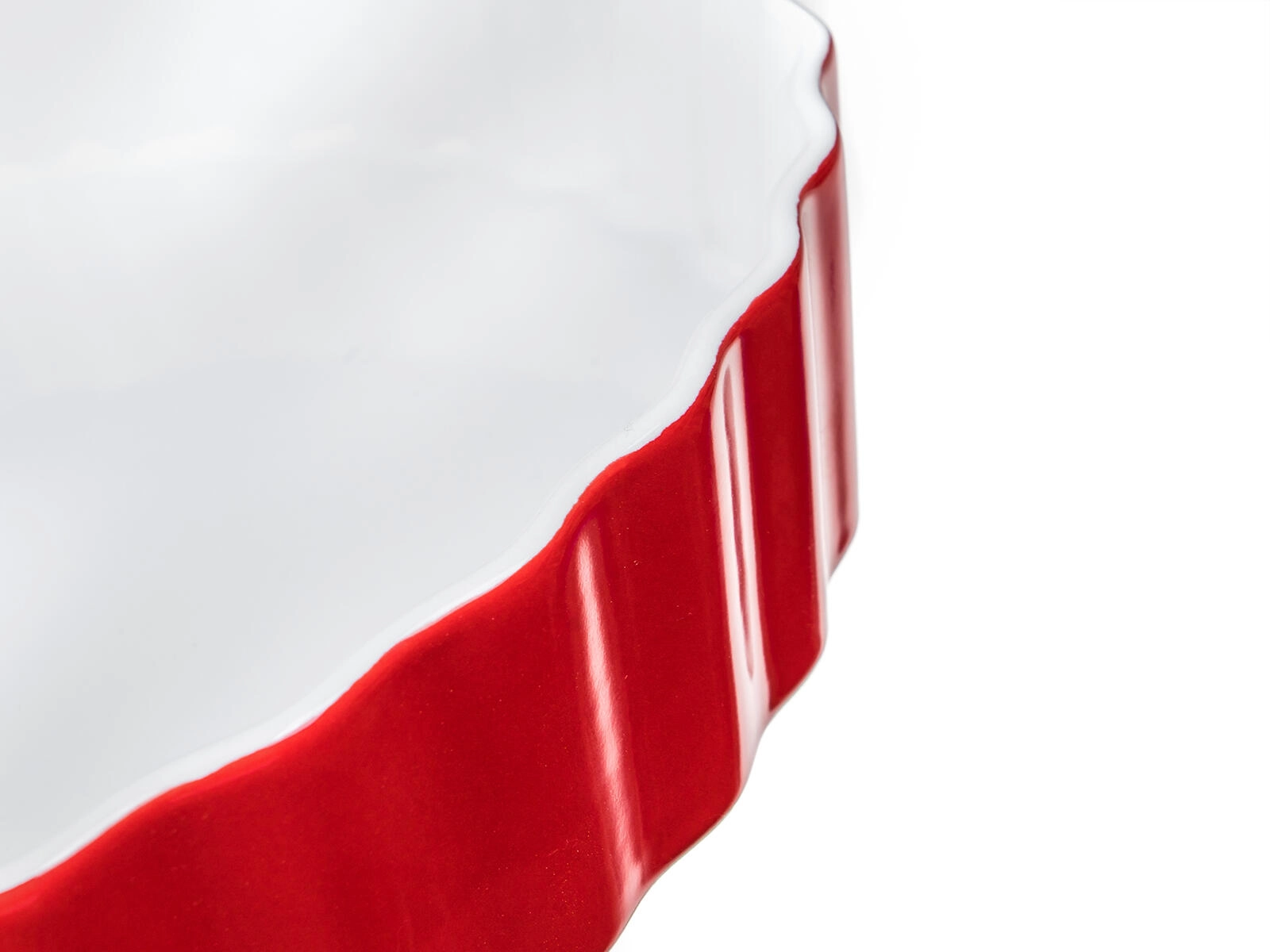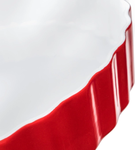 A dekoratív hullámos perem nemcsak szép tésztaszegélyt formál, hanem elegáns megjelenést is ad a tálalásnak. A piros külső és a fehér belső kombinációja illik a modern és a hagyományos konyhákhoz is. A forma sütőben használható; főzőlapon nem alkalmas.