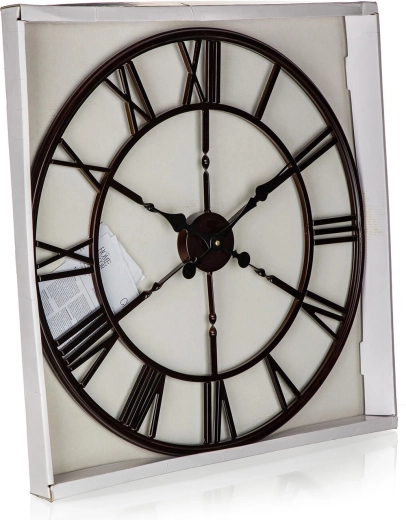 Stílusos Antic Black falióra, nagy 60 cm átmérővel és teljes felületű dekorral. A 1× AA elemről működő, halk szerkezetnek köszönhetően ideális dizájn dekoráció a nappaliba, hálószobába és egy stílusos konyhába is (az elem nem része a csomagnak).
