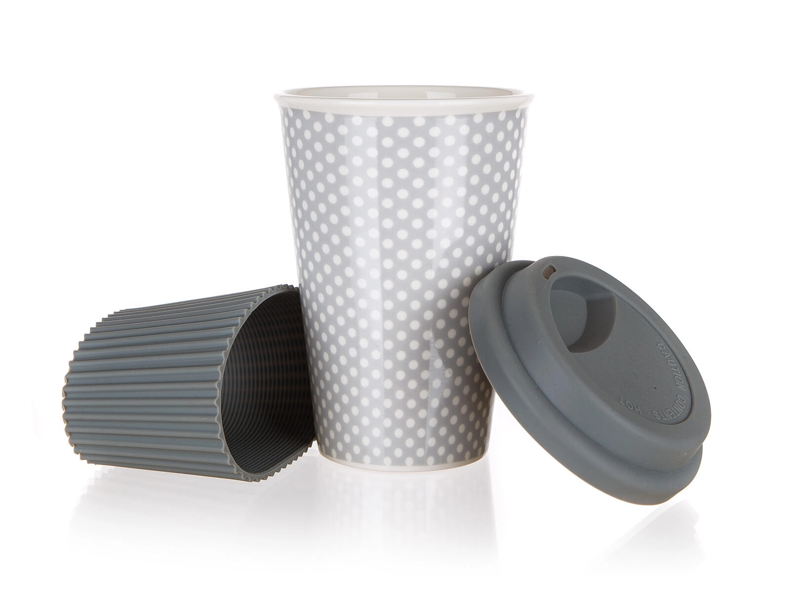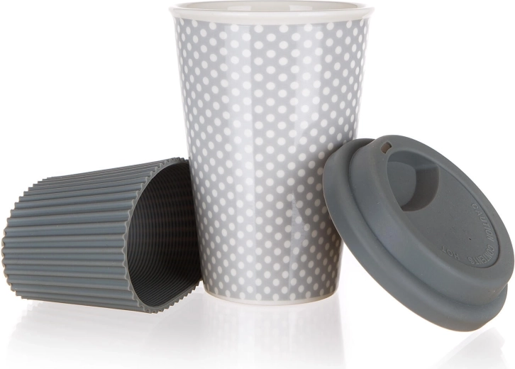 Stílusos, 400 ml űrtartalmú utazóbögre elegáns szürke színben, mindennapi kávéhoz vagy teához ideális. Szivárgásgátló szilikon fedéllel és bordázott szilikon hüvellyel a biztos fogásért és a hővédelemért. A kerámia test kiválóan tartja a hőt, és mikróban és mosogatógépben is használható.