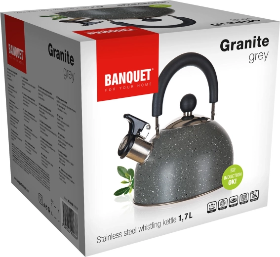 Fedezze fel a praktikus és tartós vízforralót modern Granite Grey kivitelben. A 0,33 mm falvastagságú, 201-es rozsdamentes acél test és a 18/0 típusú alj gyors hőátadást, hosszú élettartamot és mindennapi megbízhatóságot nyújt. A stílusos, márványozott felület könnyen tisztítható, és remekül illik bármely konyhába.