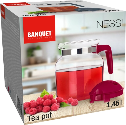 A Nessi 1,45 l üvegkancsó elegáns megjelenést ötvöz a mindennapi praktikummal. Az átlátszó test lehetővé teszi a tartalom ellenőrzését, a széles nyak megkönnyíti a töltést és a tisztítást, a formázott fogantyú pedig biztos fogást nyújt. A 100 °C-ig hőálló üvegnek köszönhetően egyaránt ideális forró italok és gyümölcsös, hideg limonádék felszolgálásához.