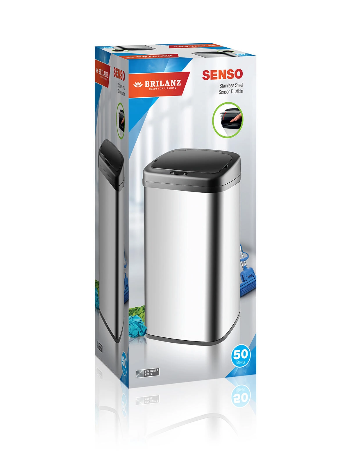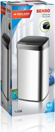 A modern, érintésmentes SENZO szemetes 50 literes űrtartalommal ideális választás konyhába, irodába és otthonra. A rozsdamentes test fekete műanyag fedéllel stílusos, tartós és könnyen karbantartható. A fedélszenzor teljesen higiénikus, érintésmentes kezelést biztosít – a fedél magától kinyílik, majd a hulladék behelyezése után ismét bezáródik.