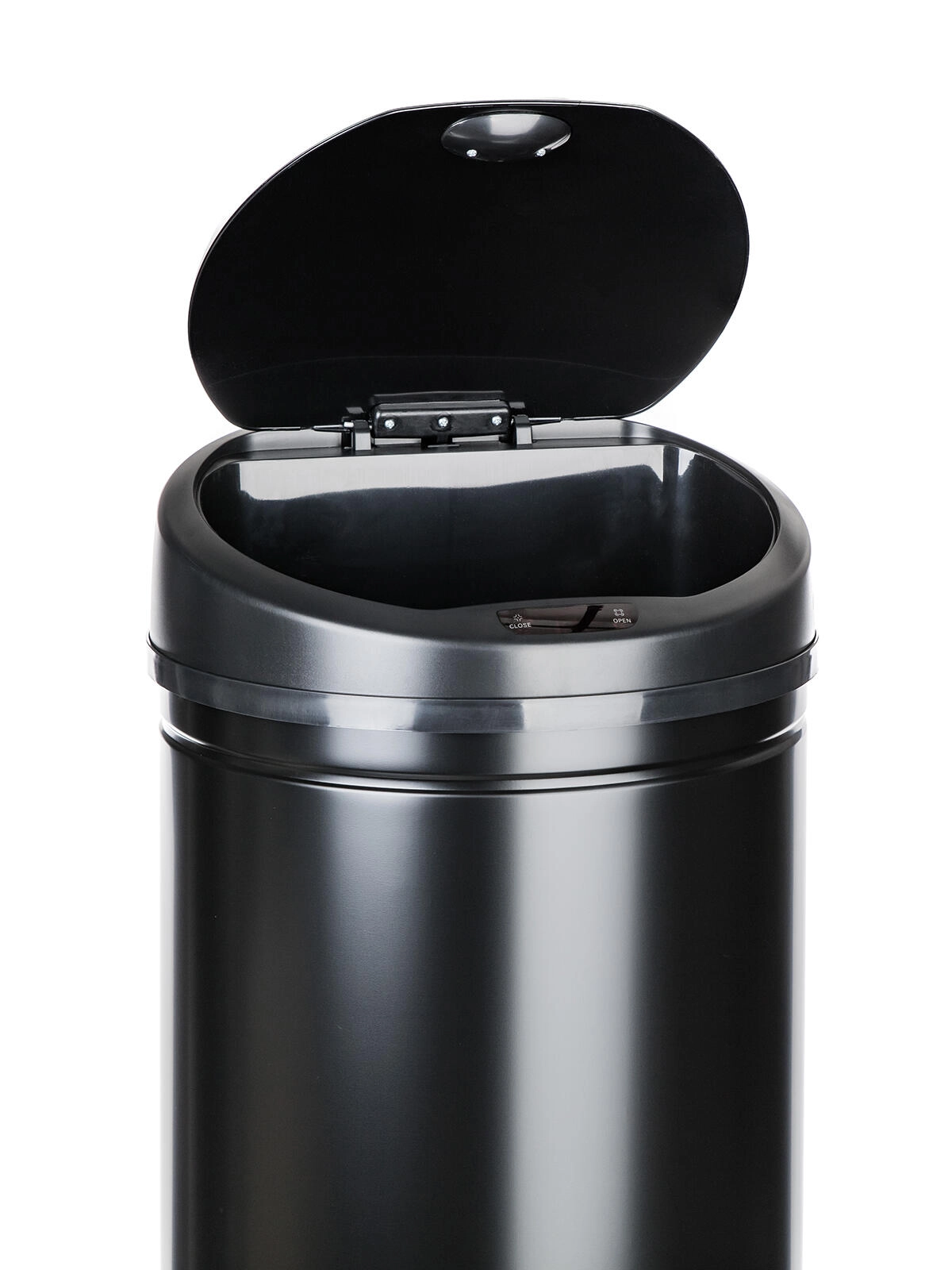 A szemetes fotoelektromos érzékelőt használ alacsony energiafogyasztással, négy darab AA elemmel működik (nem tartozék). A szemeteszsák biztosító gyűrűre rögzíthető, így stabilan a helyén marad és kívülről nem látható. A kerek alaprajznak köszönhetően a szemetes remekül elfér sarkokban és szűkebb helyeken is, és nagyvonalú 50 literes űrtartalmat kínál belső műanyag betét nélkül a maximális kapacitás érdekében.