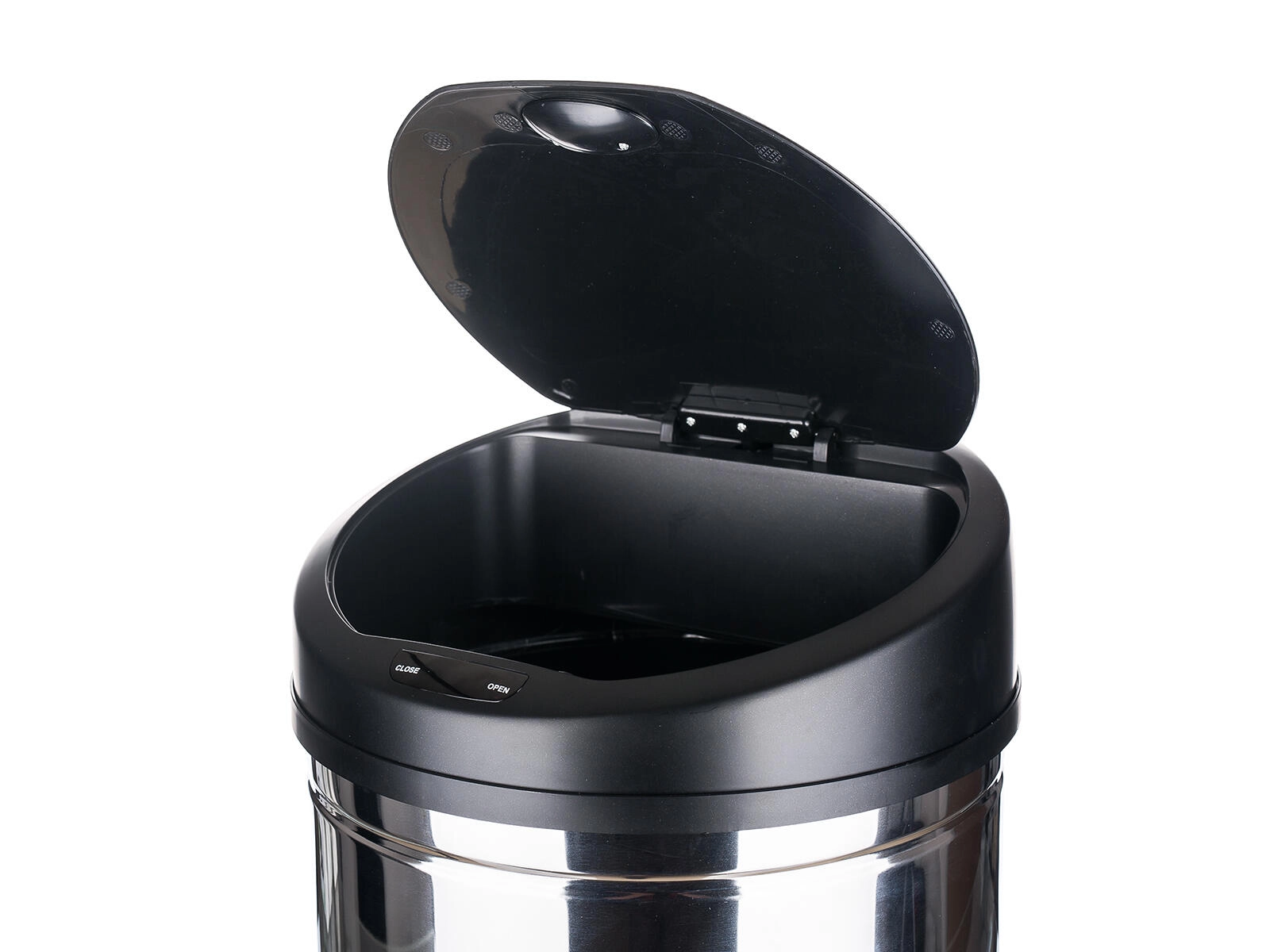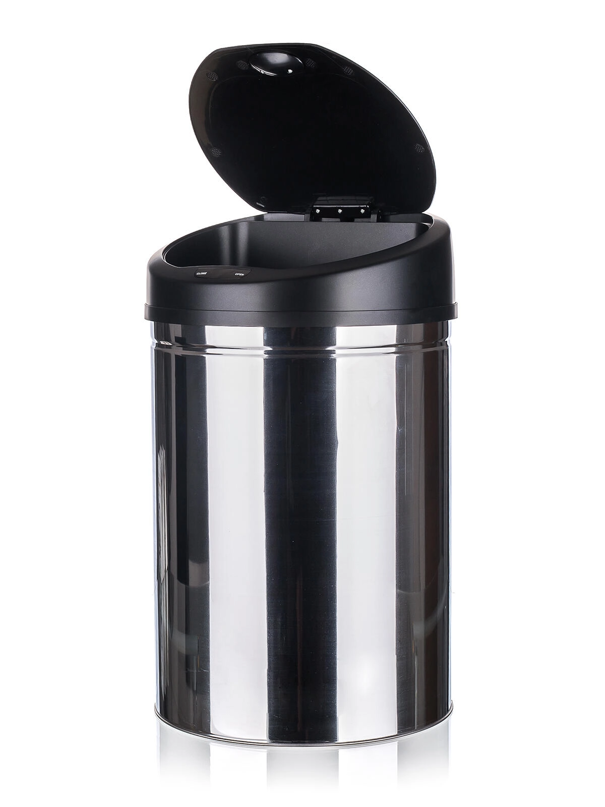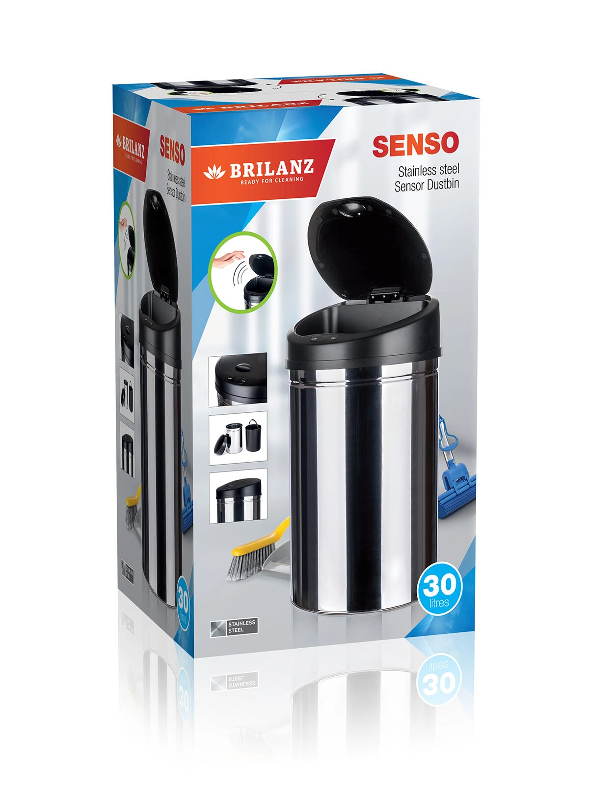 Modern érintésmentes SENZO szemetes 30 l űrtartalommal, elegáns rozsdamentes acél kivitelben a tisztább és kényelmesebb takarításhoz otthon és irodában. A beépített szenzornak köszönhetően a fedél automatikusan nyílik és záródik, ami maximális higiéniát biztosít érintés nélkül. A tartós rozsdamentes test fényes felülettel és a kivehető belső műanyag tartály megkönnyítik a karbantartást. A tápellátást 4× AA elem biztosítja alacsony energiafogyasztással.
